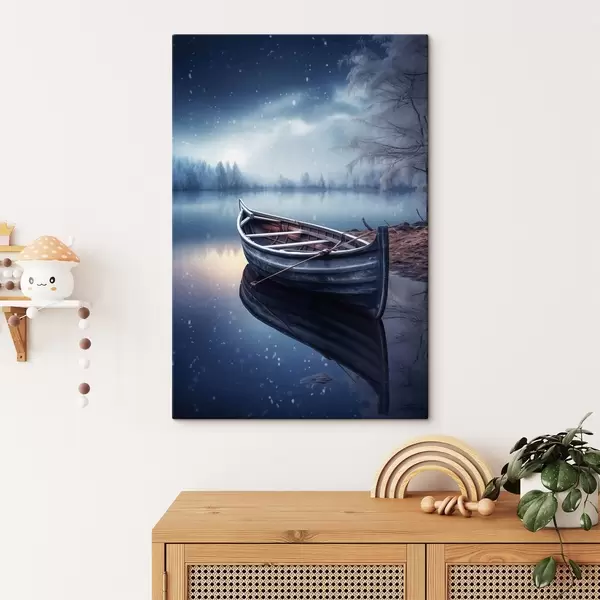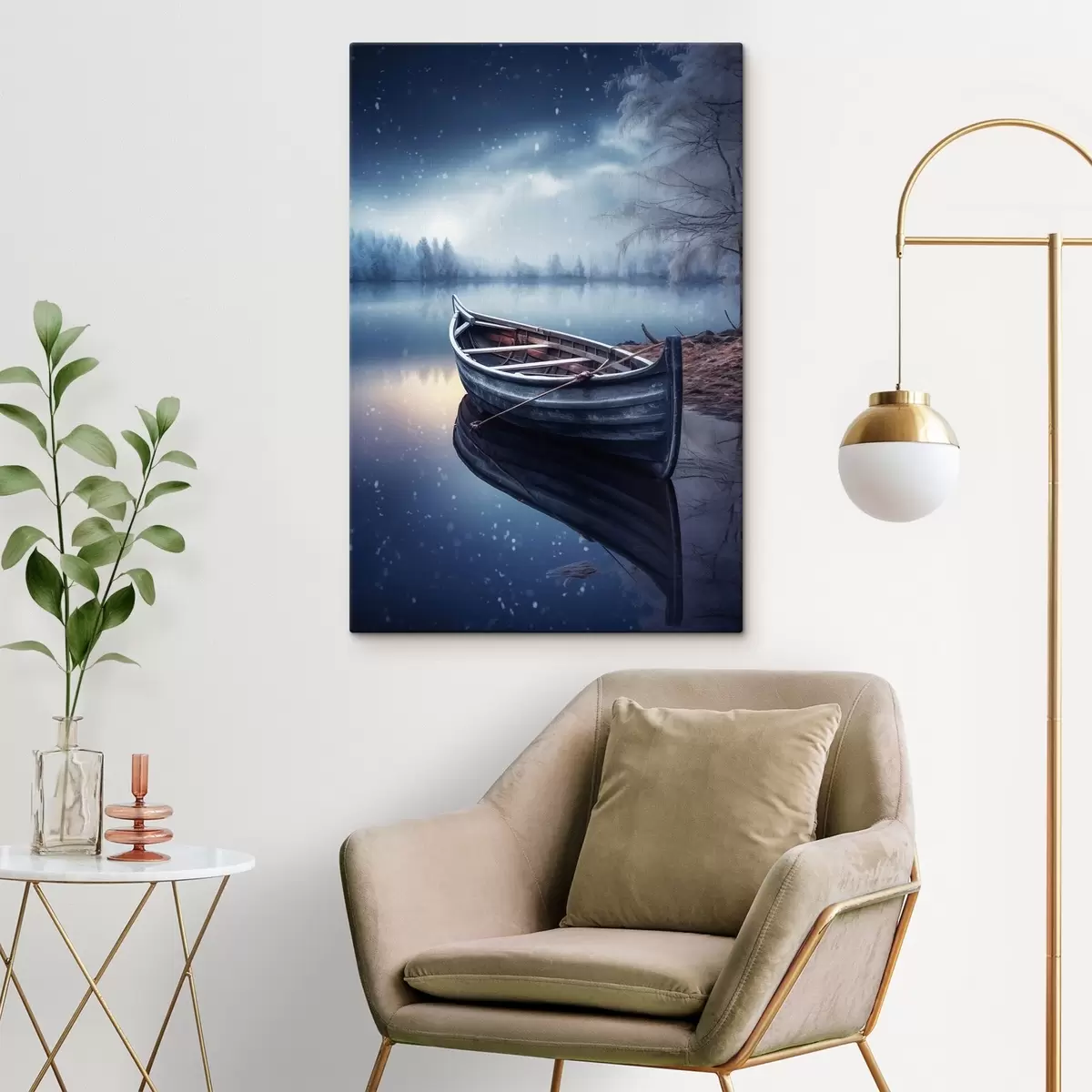 Glezna Tukša laiva pie ziemas ezera Nr s46773