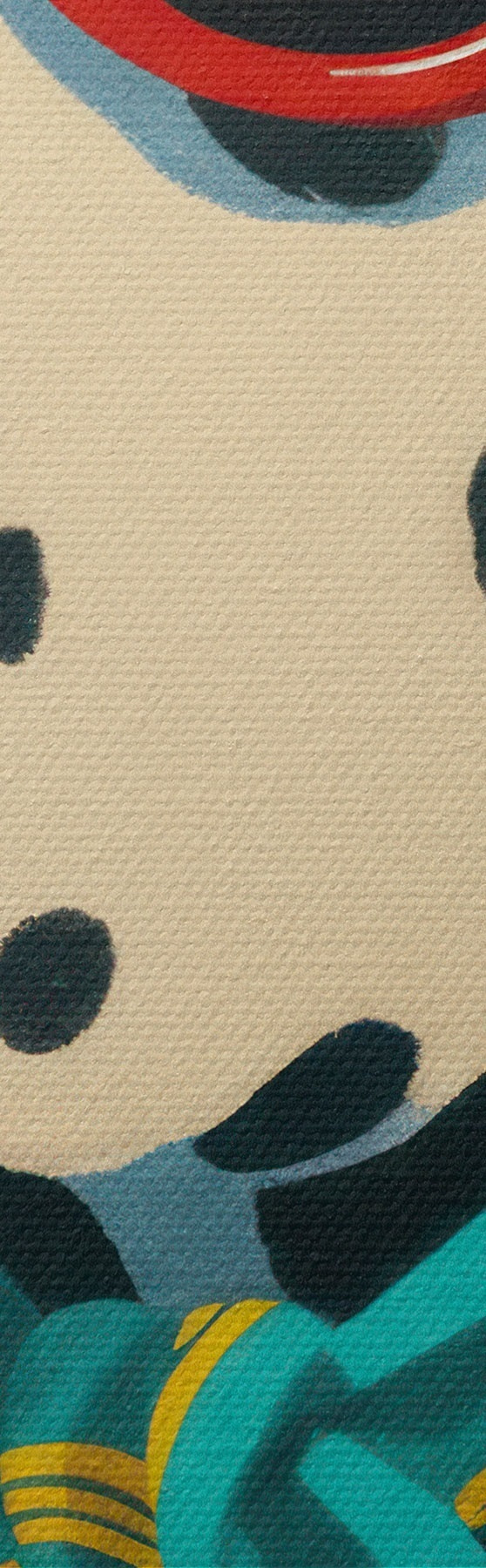Smalkais diegu pinums uz šī audekla atgādina profesionālu mākslinieku audeklu virsmu.