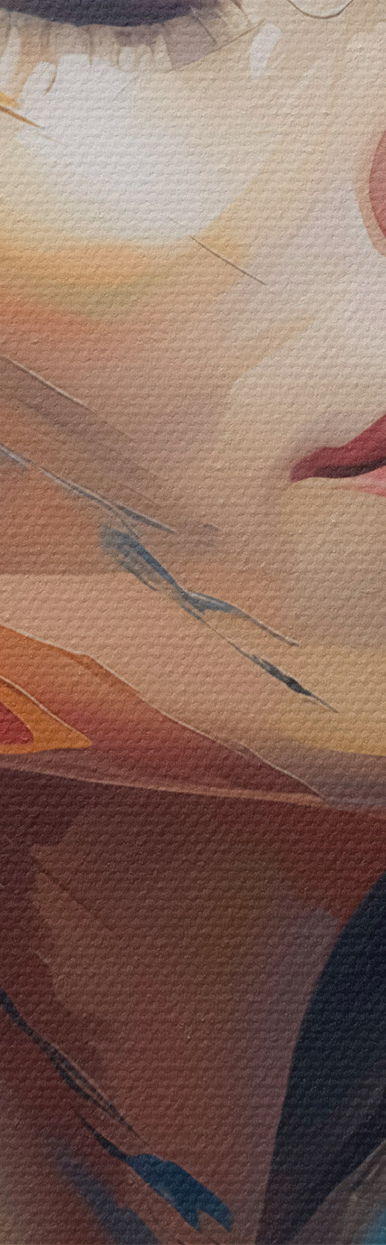 Smalkais diegu pinums uz šī audekla atgādina profesionālu mākslinieku audeklu virsmu.