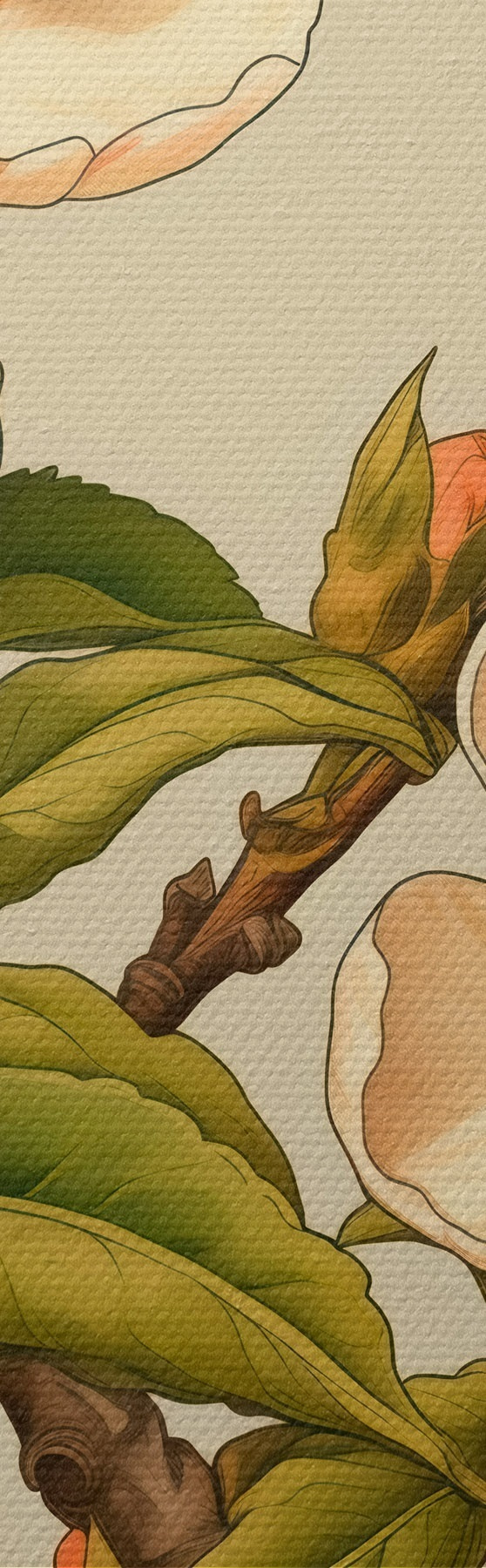 Glezna Ziedoša zaru ar baltiem ziediem uz smilškrāsas fona klasiskā ilustrācijas stilā Nr s46923