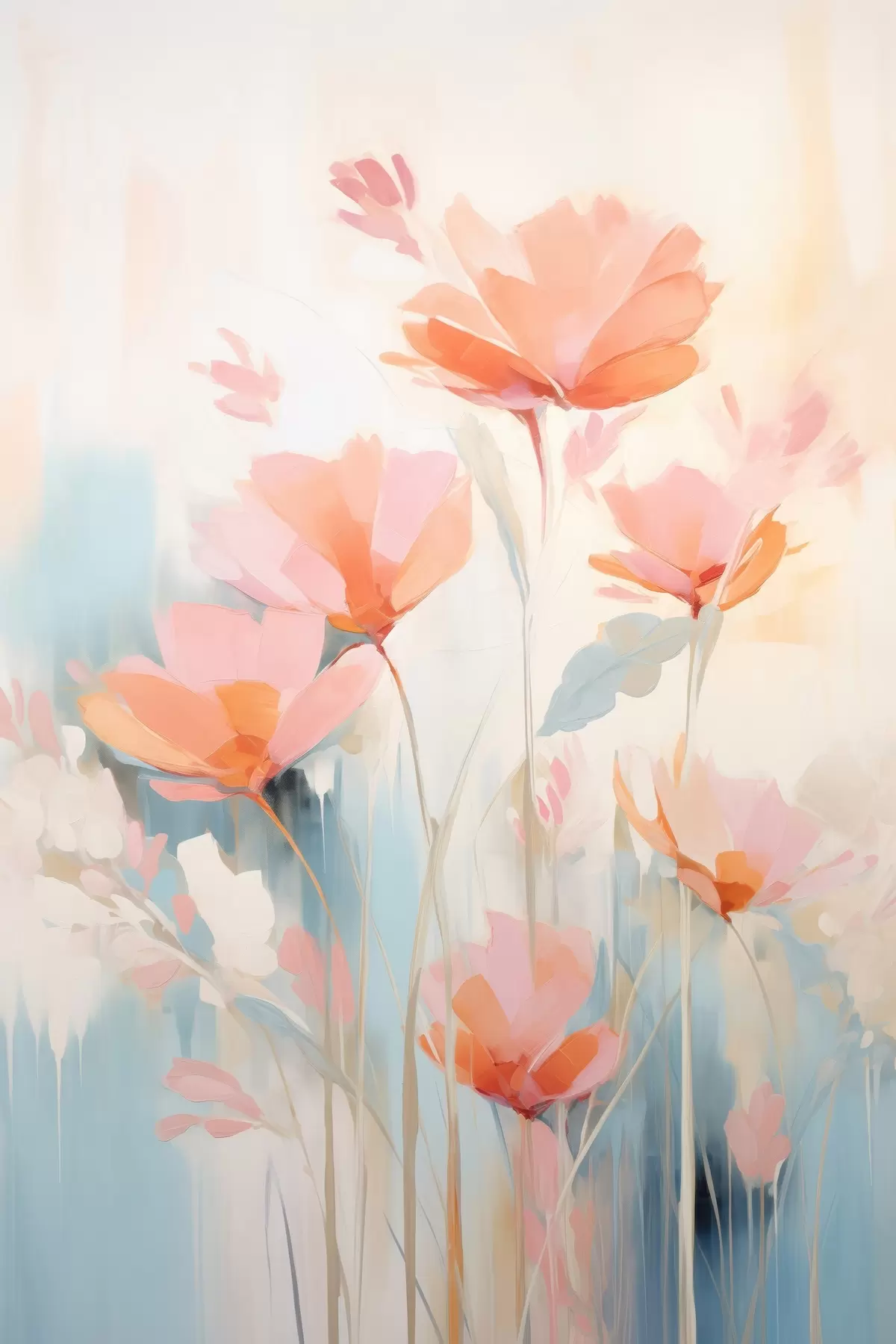 Glezna Pastelkrāsas ziedu kompozīcija mūsdienīgā glezniecības stilā s46930