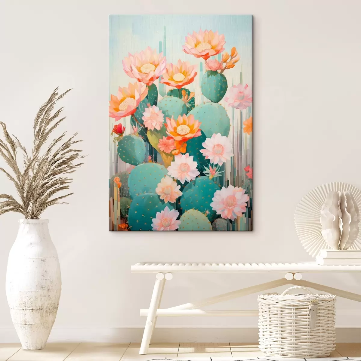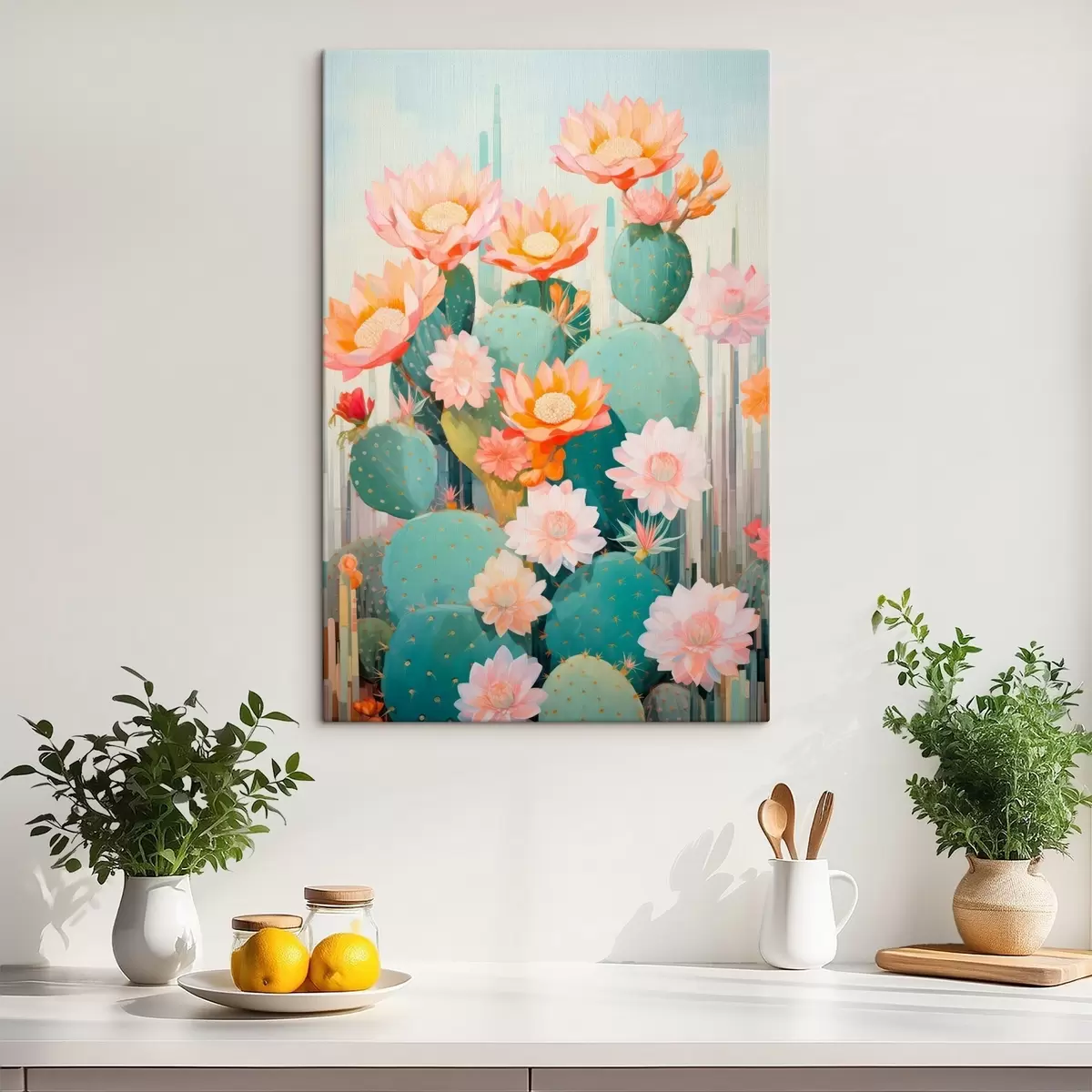 Glezna Kaktusu ziedu dārzs maigā pasteļu krāsu toņos ilustrācijas stilā s46935