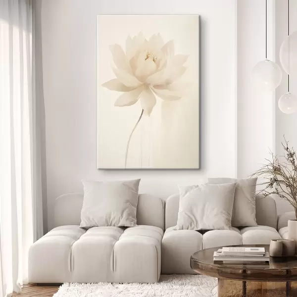 Glezna Delikāts balts lotoss uz gaiša fona minimālisma stilā s46936