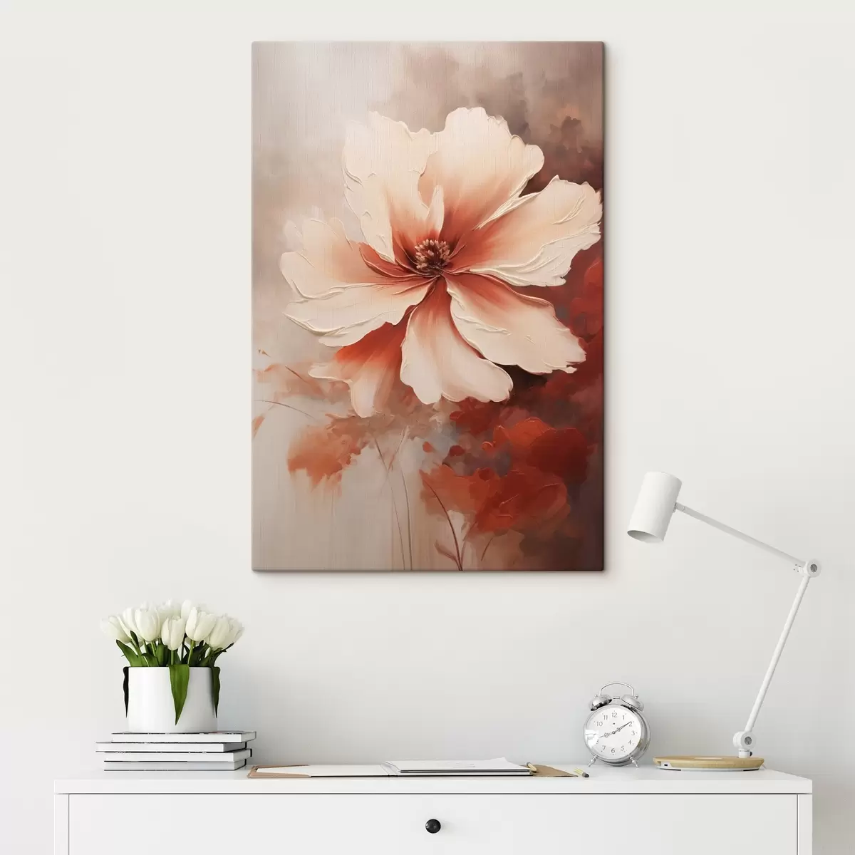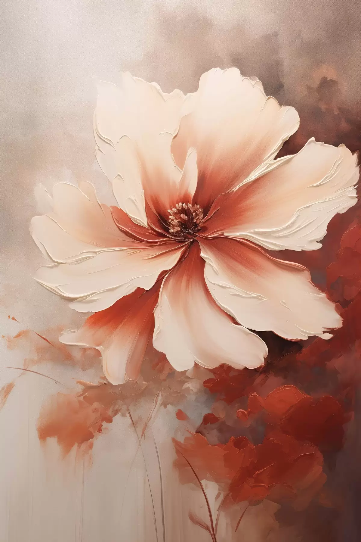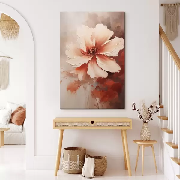Glezna Tuvplāns ar balto koraļļu ziedu uz izplūduša fona eļļas gleznas stilā s46939