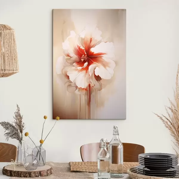 Glezna Baltas un sarkanas ziediņas ar puscaurspīdīgiem ziedlapiem un plūstošiem krāsas pilieniem Nr s46940