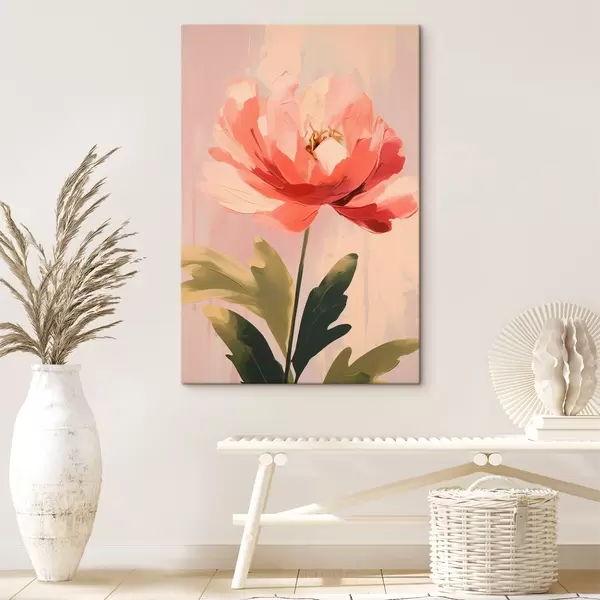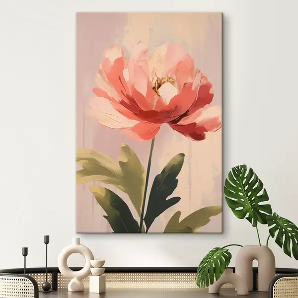 Glezna Koraļļu peonija uz pasteļtoņa fona modernā mākslas ilustrācijas stilā Nr s46949