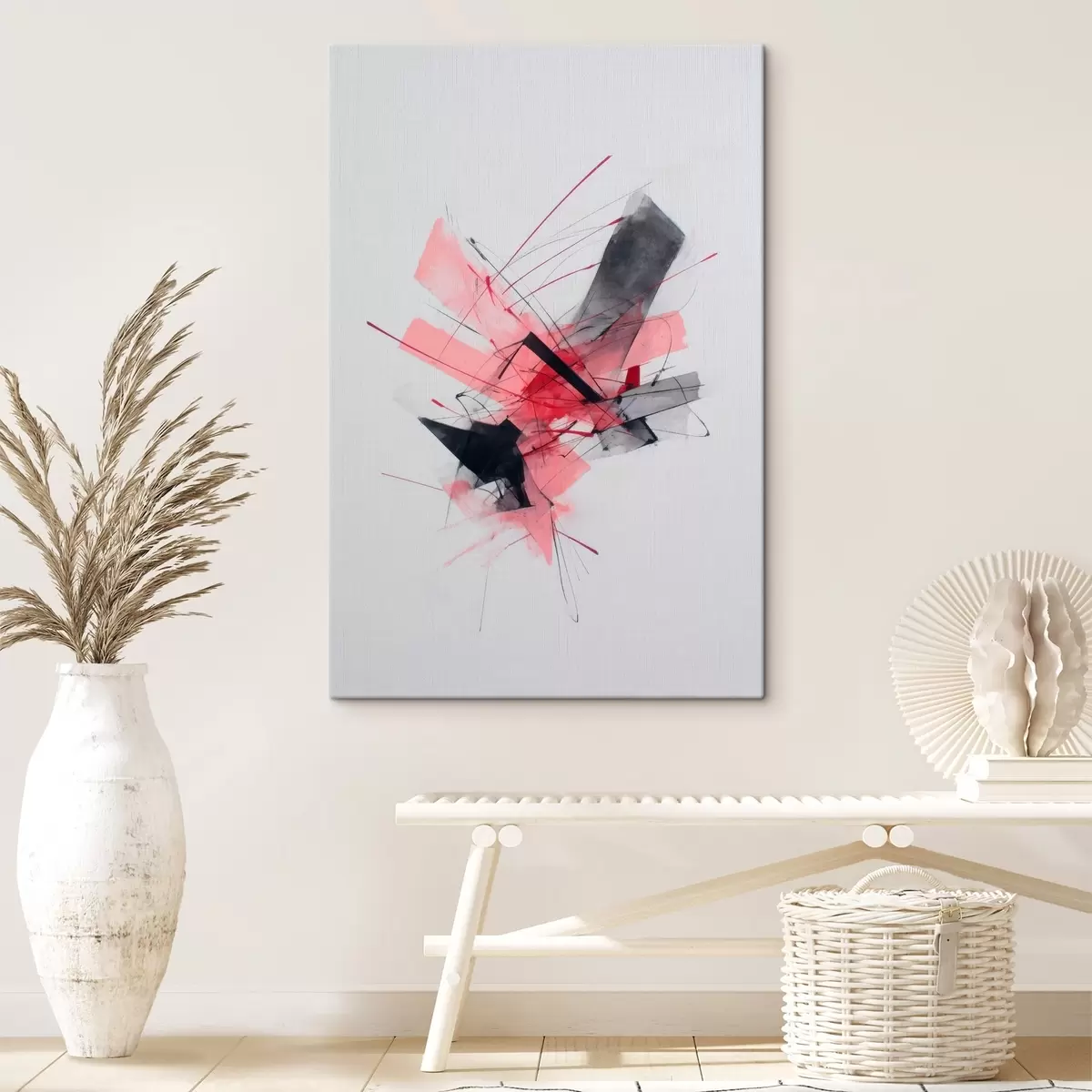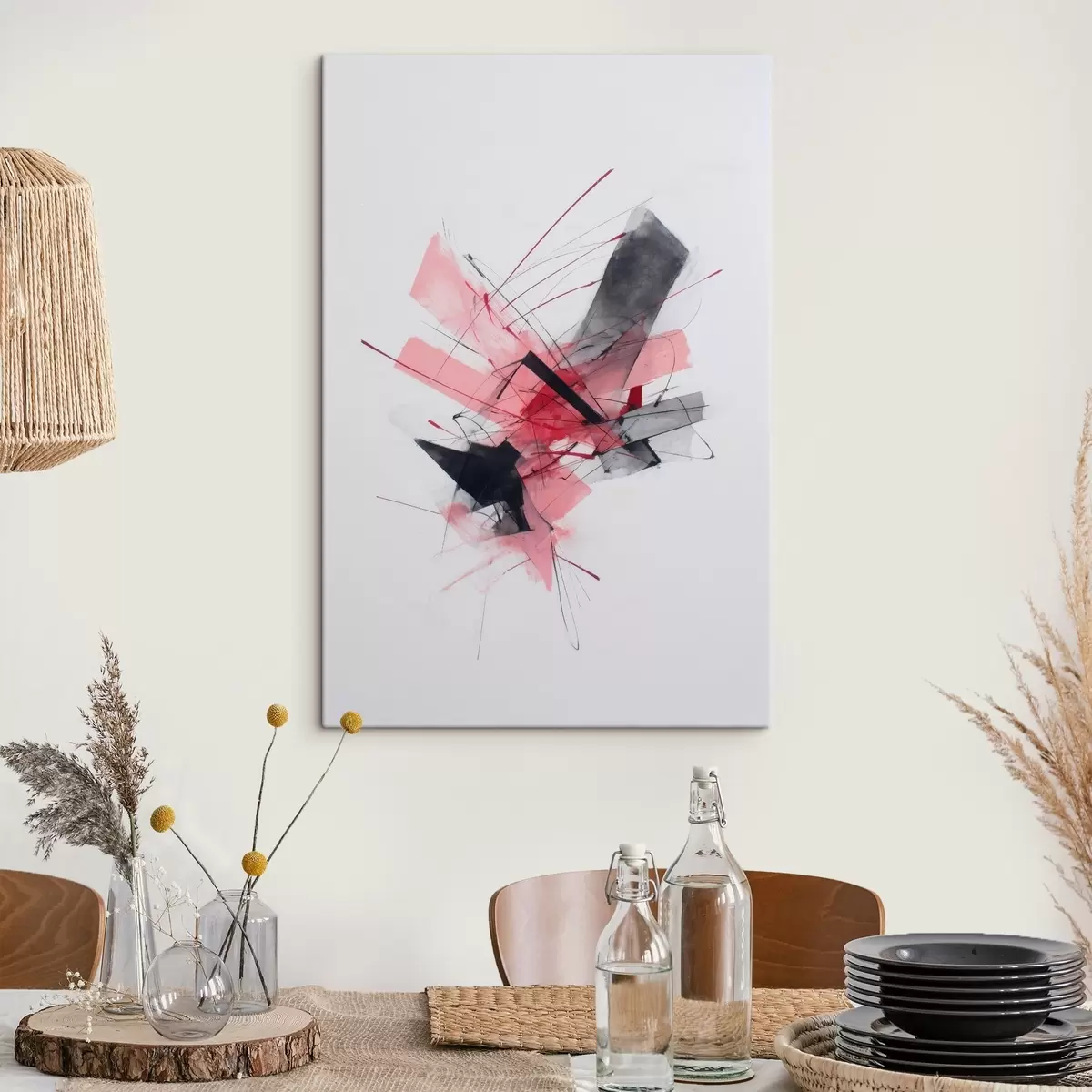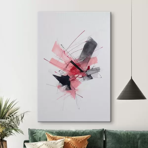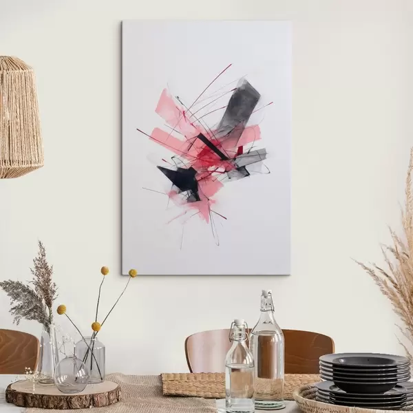 Glezna Abstrakts ar rozā un melniem ģeometriskiem elementiem s46950