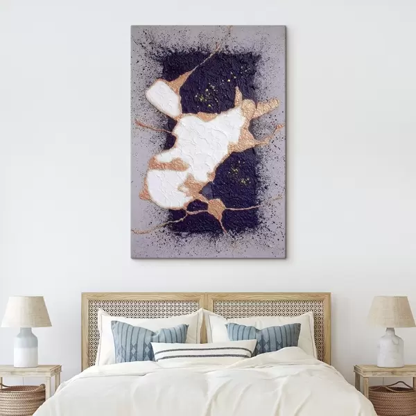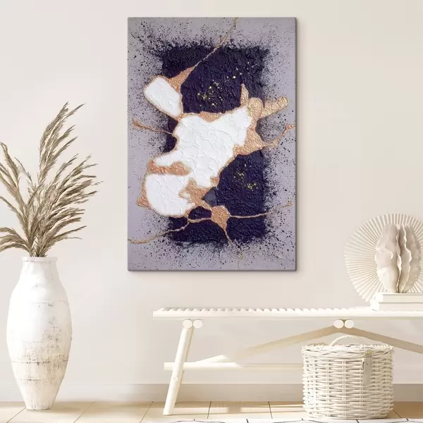 Glezna Abstrakts violeta un smilškrāsas toņos ar apjomīgu tekstūras efektu s46952