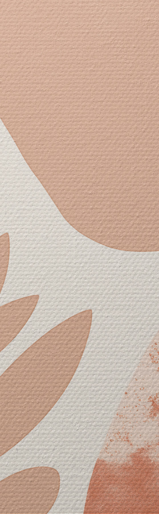 Glezna Abstraktas formas, teksturēti akmeņi un lapas klusinātos persiku un terakotas toņos, minimālisma stilā, krēmkrāsas fonā. Nr s47012
