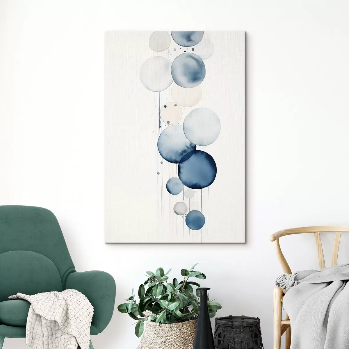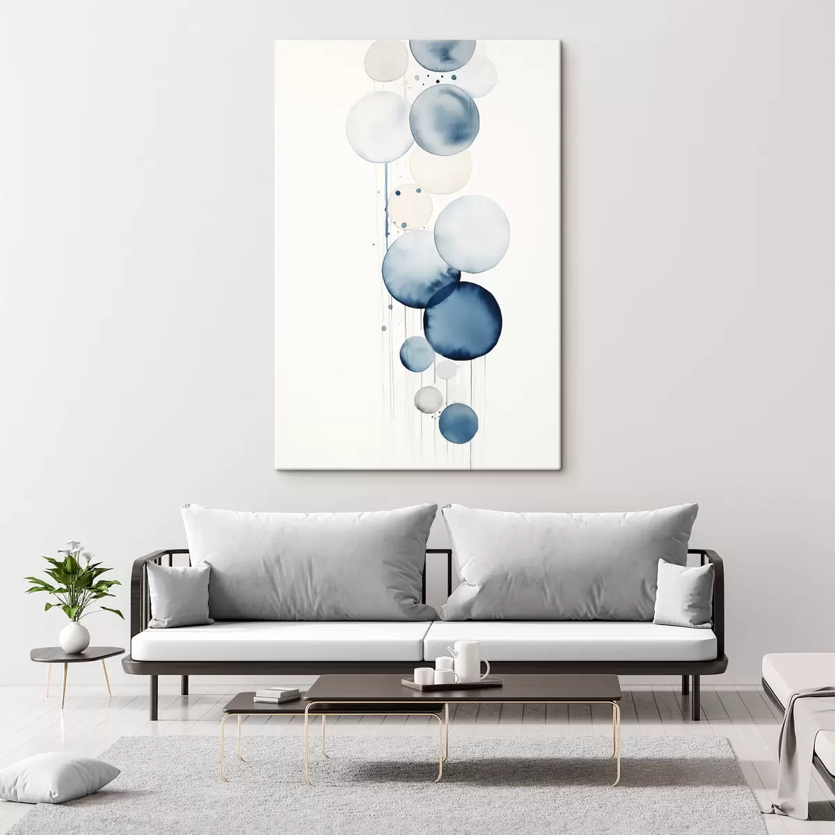 Glezna Abstrakts teksturēts zils un balts akvareļu apļi dažādos izmēros uz balta fona s47020