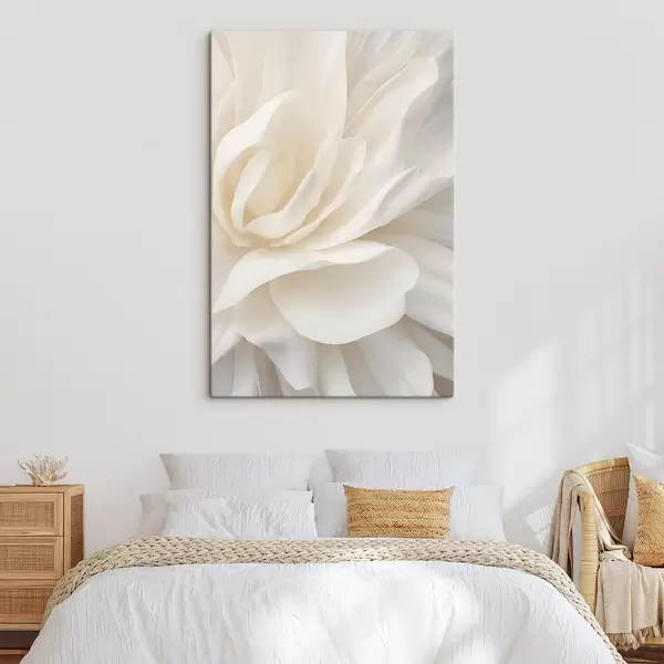 Glezna Abstrakts balts zieds ar delikātiem, slāņveida ziedlapām, minimālisma māksla s47024