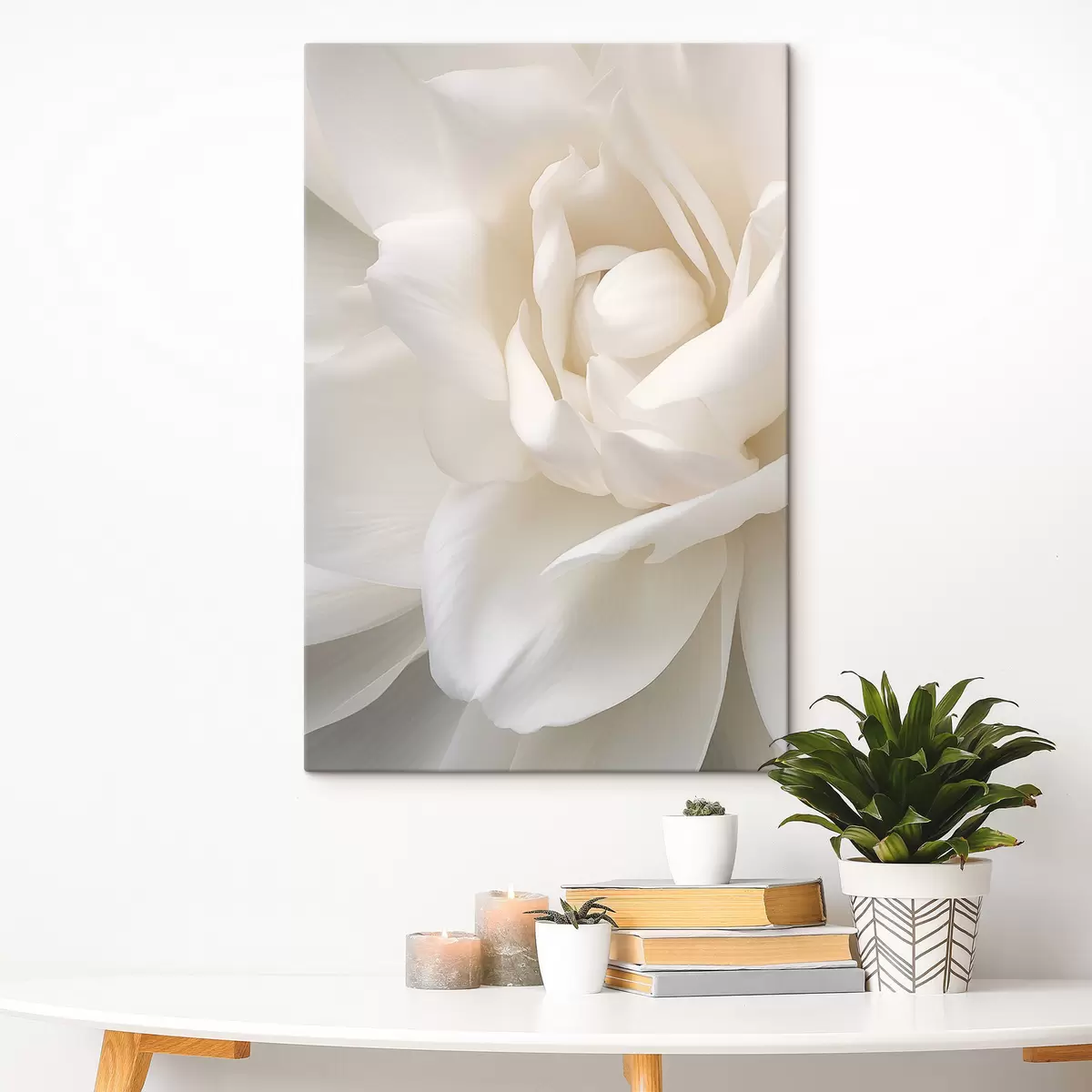 Glezna Abstrakts balts zieds ar delikātiem, slāņveida ziedlapām, minimālisma māksla s47025