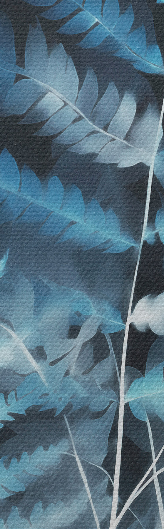 Glezna Zilas papardes un augi uz tumša, faktūru fona, ar uzsvaru uz sarežģītajām detaļām, rentgena efekts s47026
