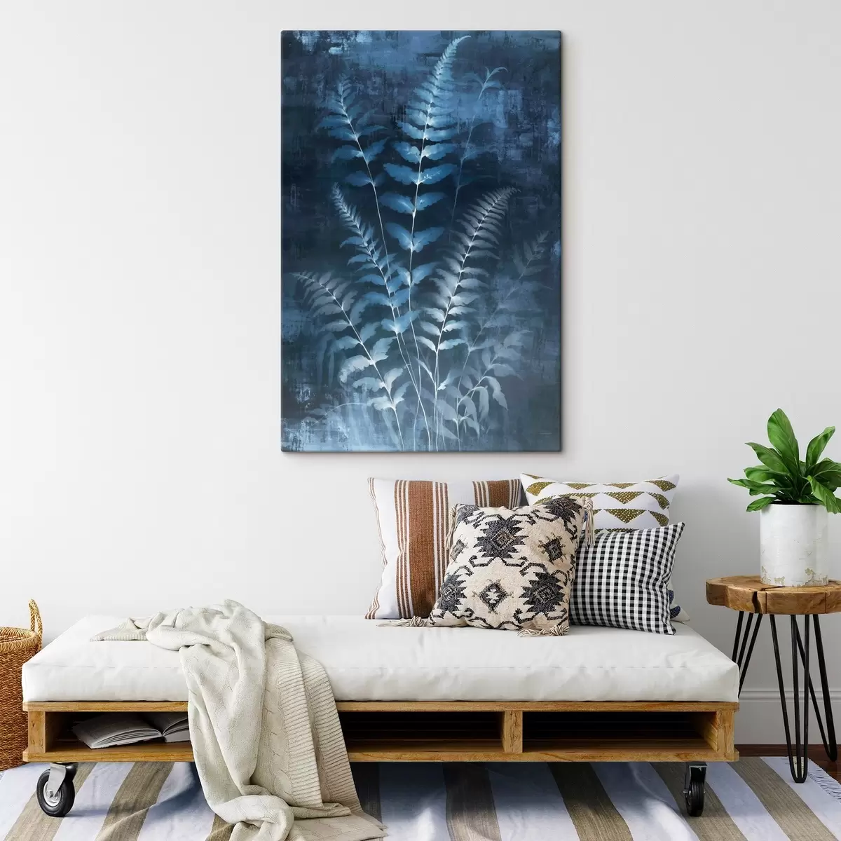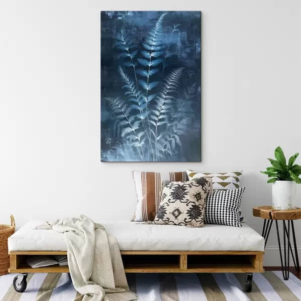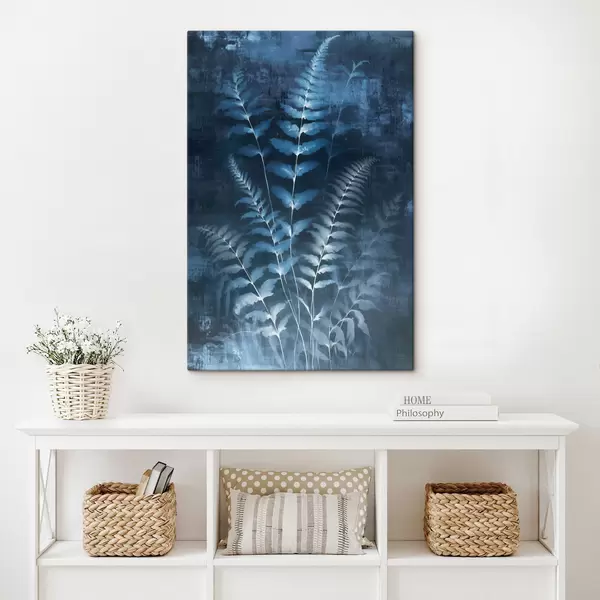 Glezna Zilas papardes un augi uz tumša, faktūru fona, ar uzsvaru uz sarežģītajām detaļām, rentgena efekts Nr s47027