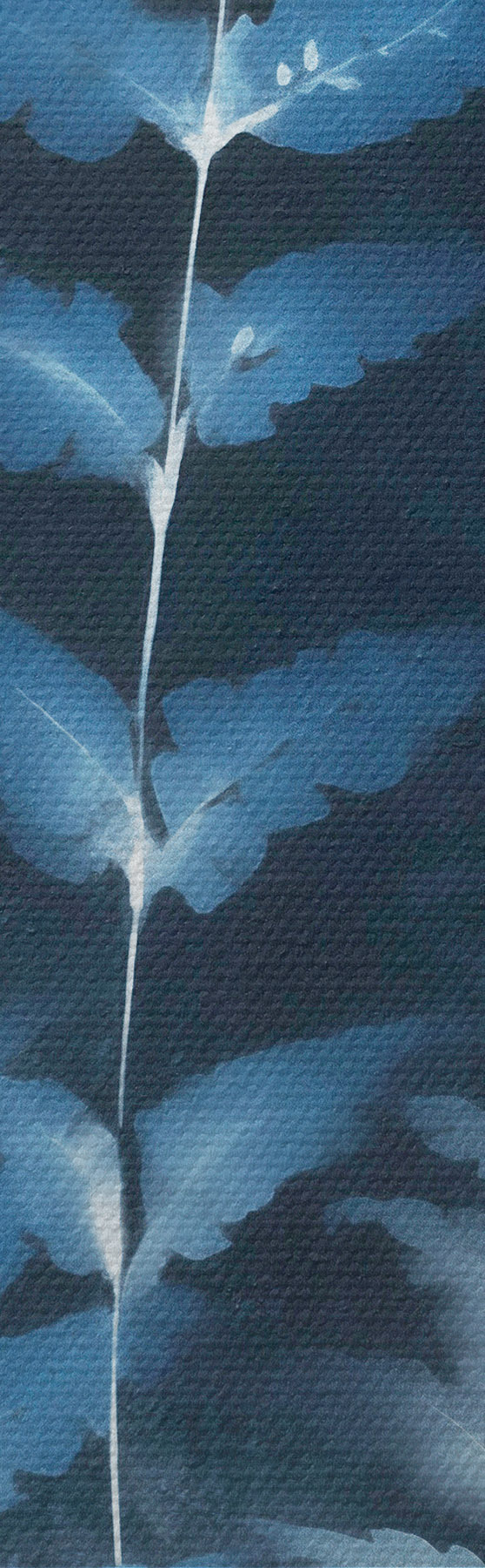 Glezna Zilas papardes un augi uz tumša, faktūru fona, ar uzsvaru uz sarežģītajām detaļām, rentgena efekts s47027