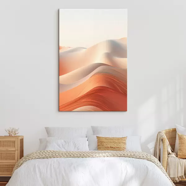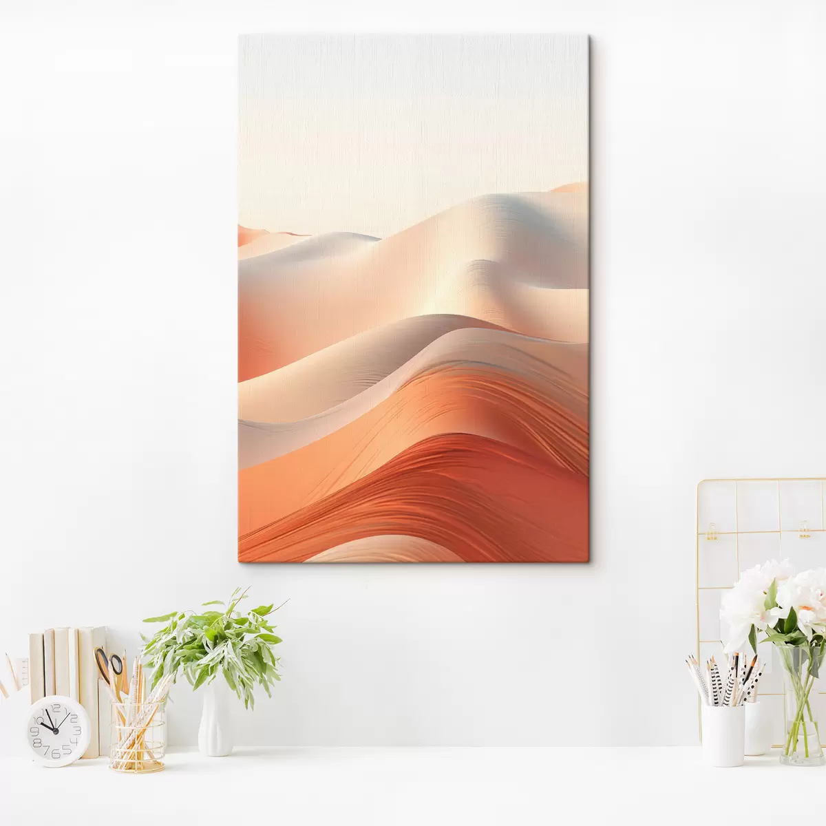 Glezna Abstrakts tuksneša ainava ar plūstošām smilšu kāpām siltos oranžos un baltos toņos s47031