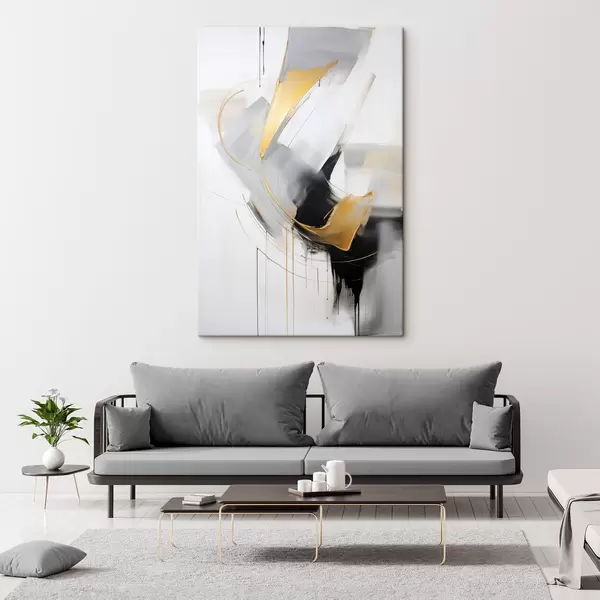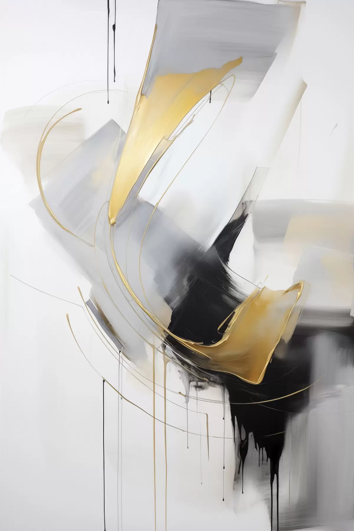 Glezna Abstrakta glezna ar dzelteniem, melniem un baltiem otu triepieniem, dinamiskām līnijām s47034