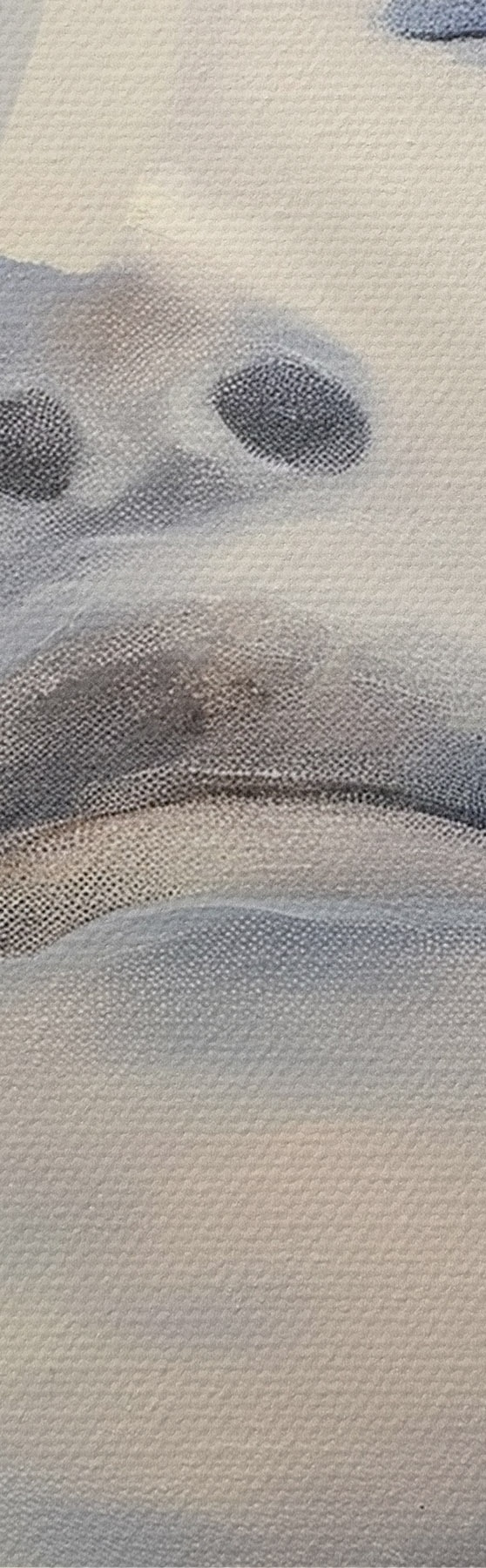 Smalkais diegu pinums uz šī audekla atgādina profesionālu mākslinieku audeklu virsmu.