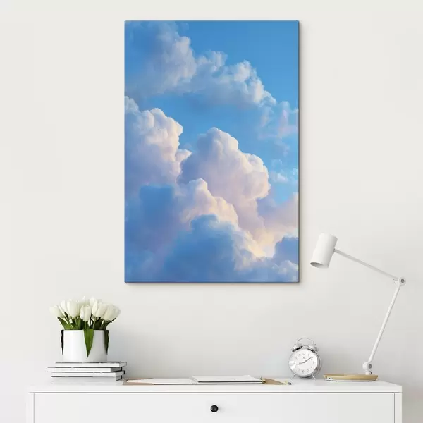 Glezna Apjomīgi mākoņi maigā zilas un rozā krāsu paletē fotoreālistiskā digitālās grafikas stilā s47088