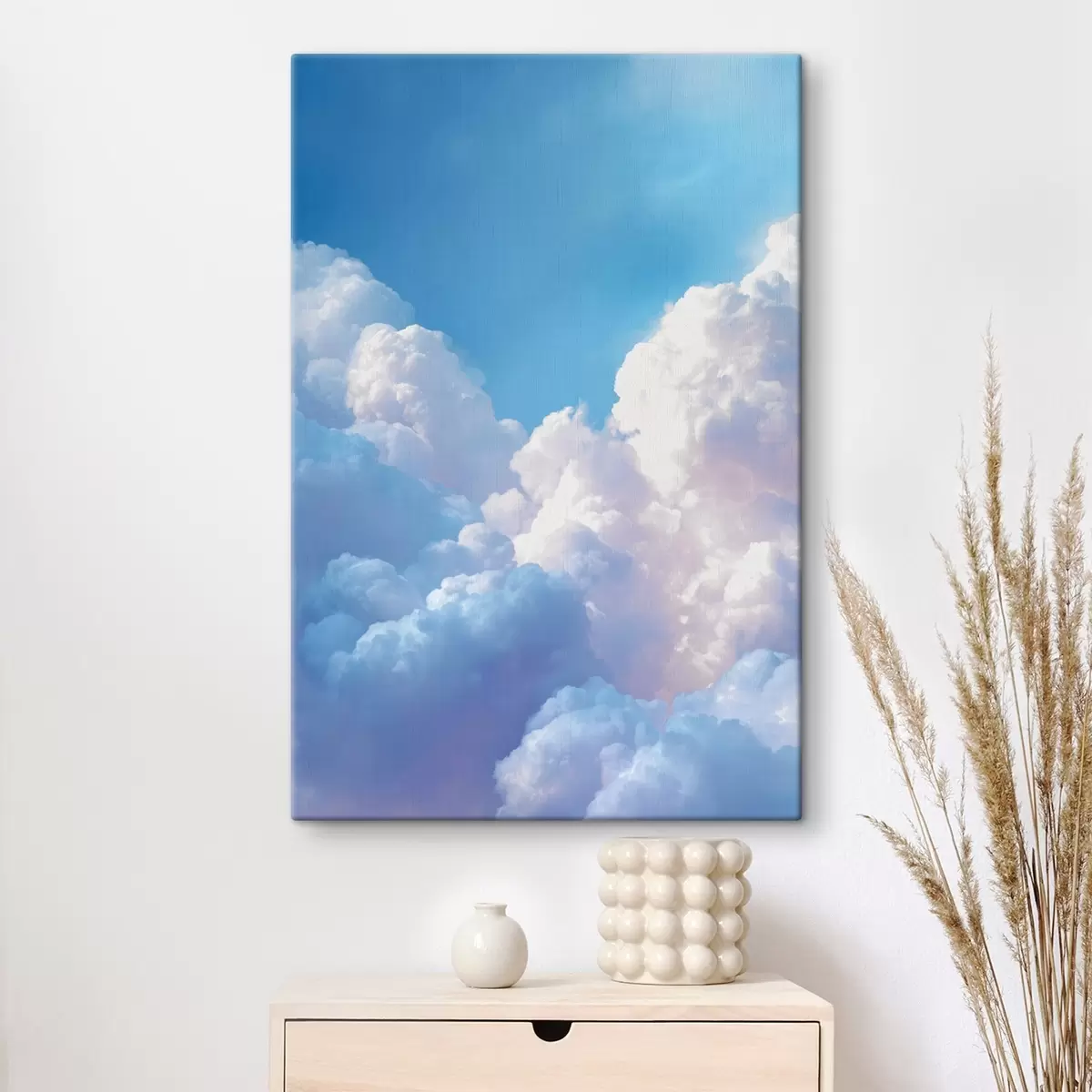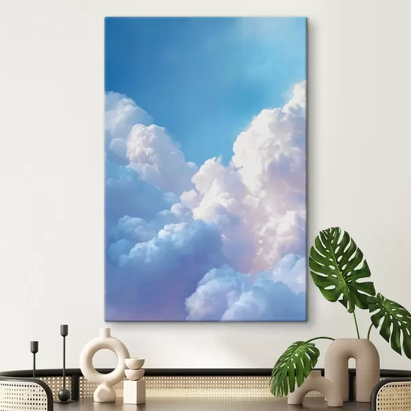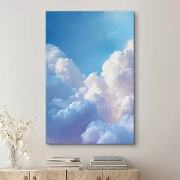 Glezna Gleznains debess ainava ar masīviem baltiem mākoņiem digitālās grafikas stilā Nr s47089