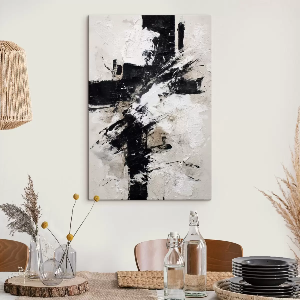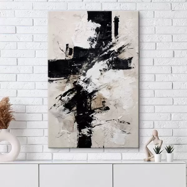 Glezna Mūsdienīgs interjers ar haotiskām līnijām un apjomīgiem triepieniem audekla glezniecības stilā Nr s47090