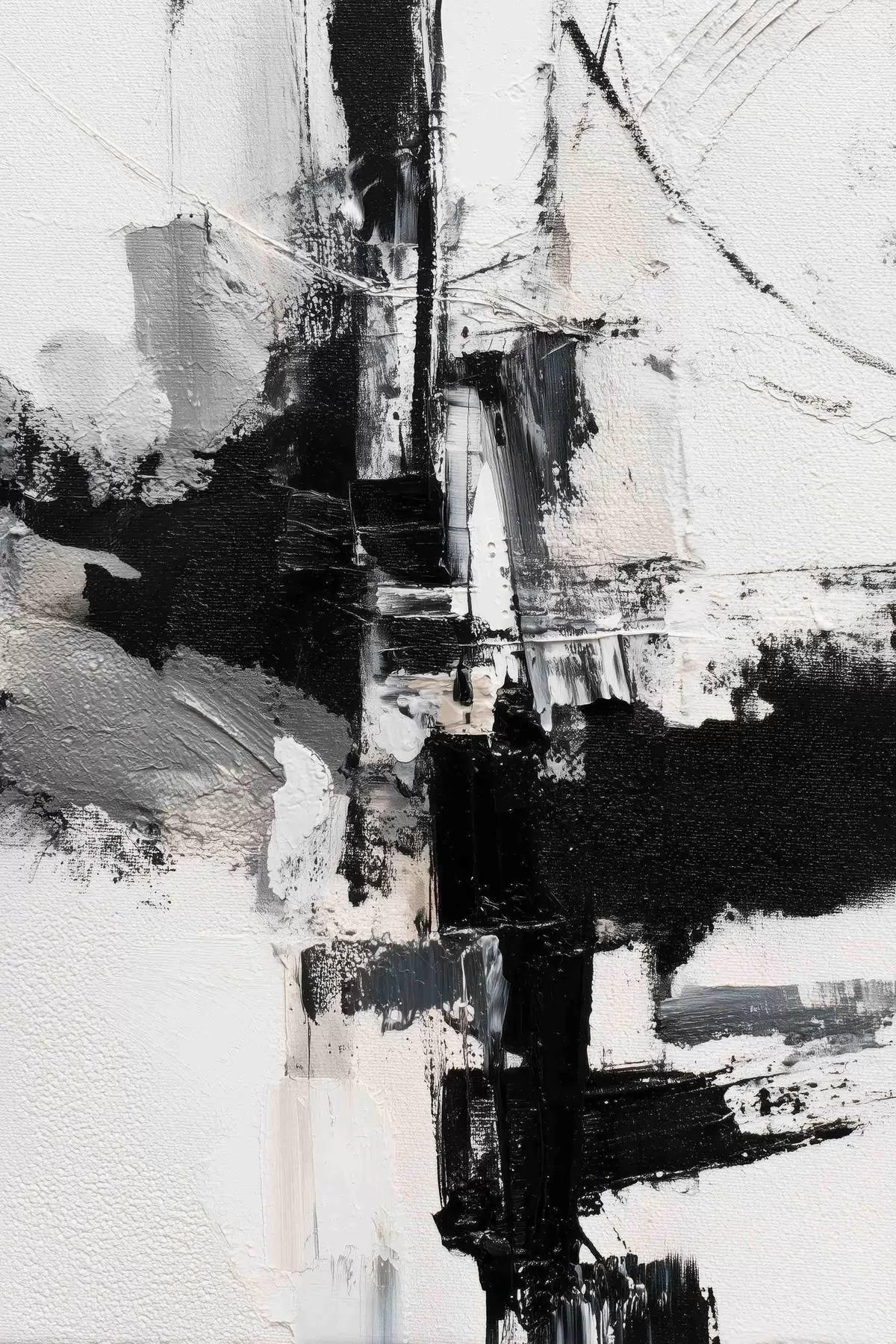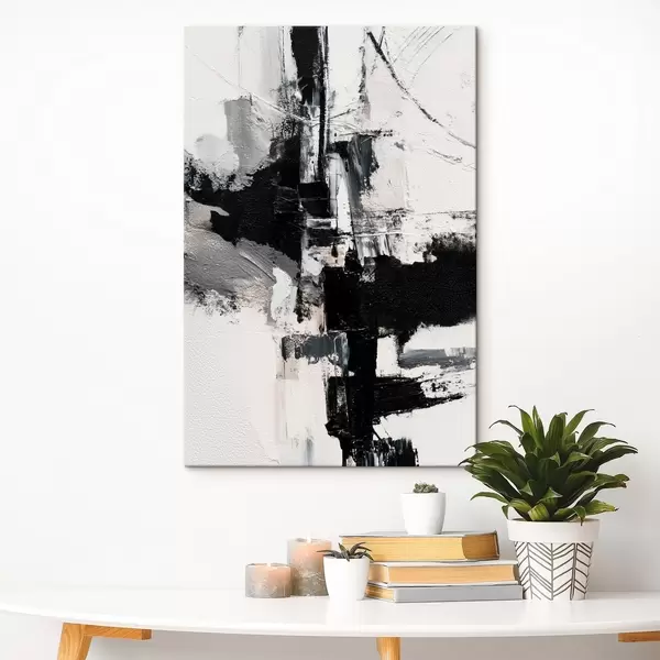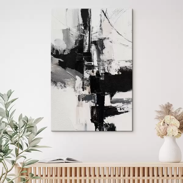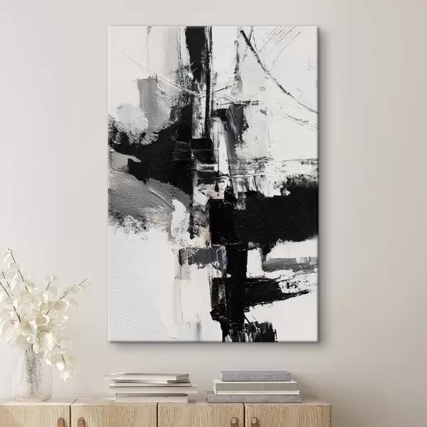 Glezna Teksturēta ilustrācija ar kontrastējošiem melniem un pelēkiem triepieniem eļļas gleznas stilā s47091