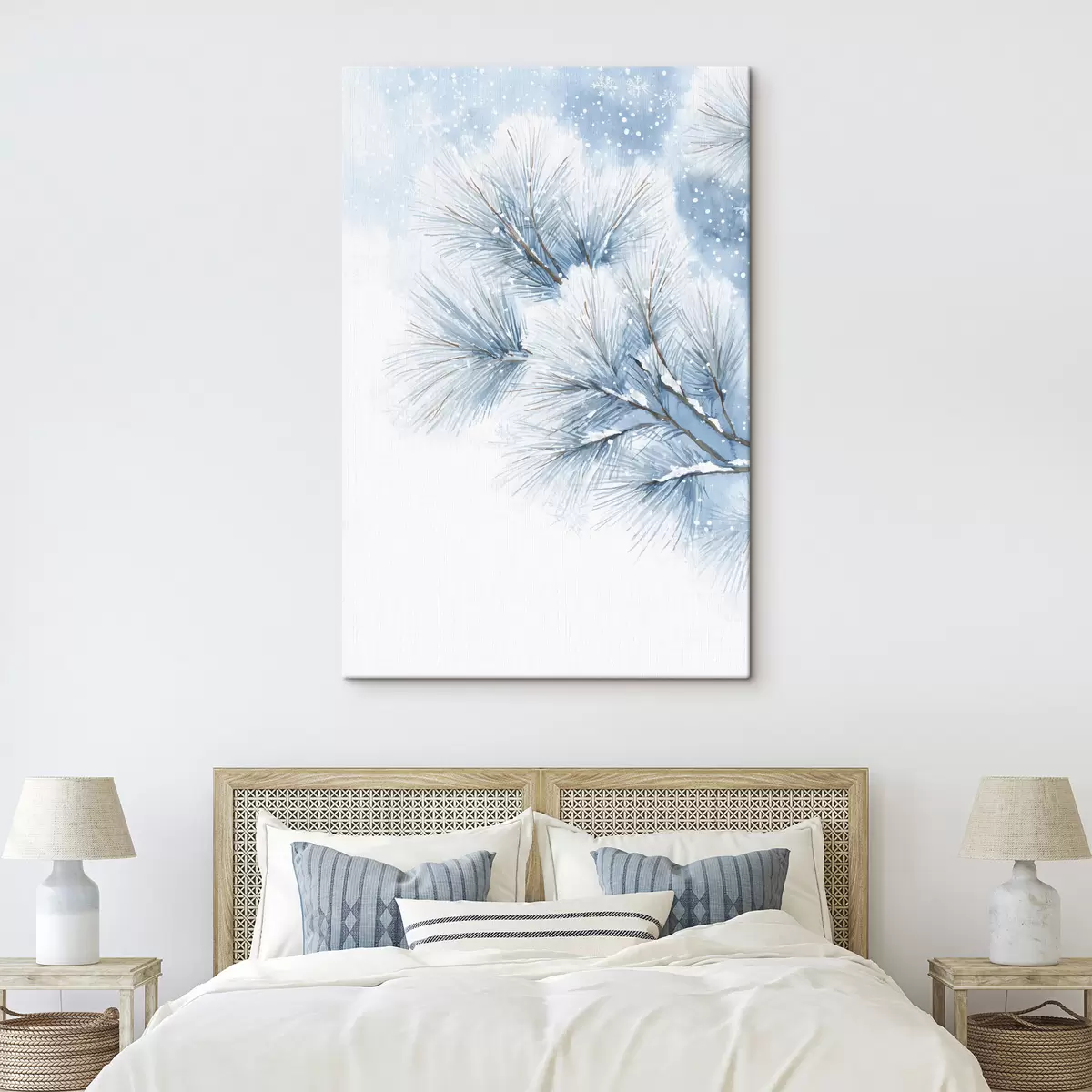 Glezna sniega klāta priežu zaru akvareļa stilā Nr s47114