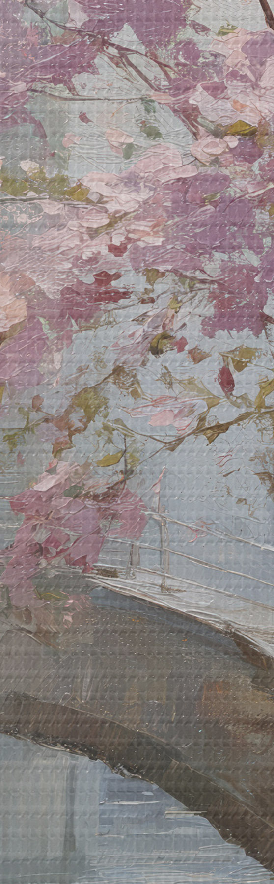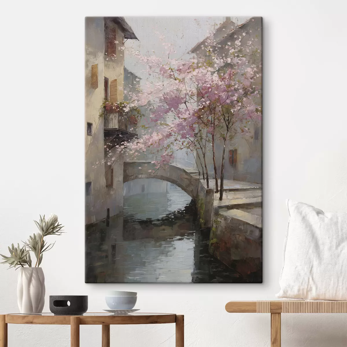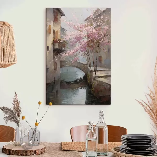 Glezna romantiska pilsētas ainava ar ziedošu koku eļļas gleznas stilā Nr s47127