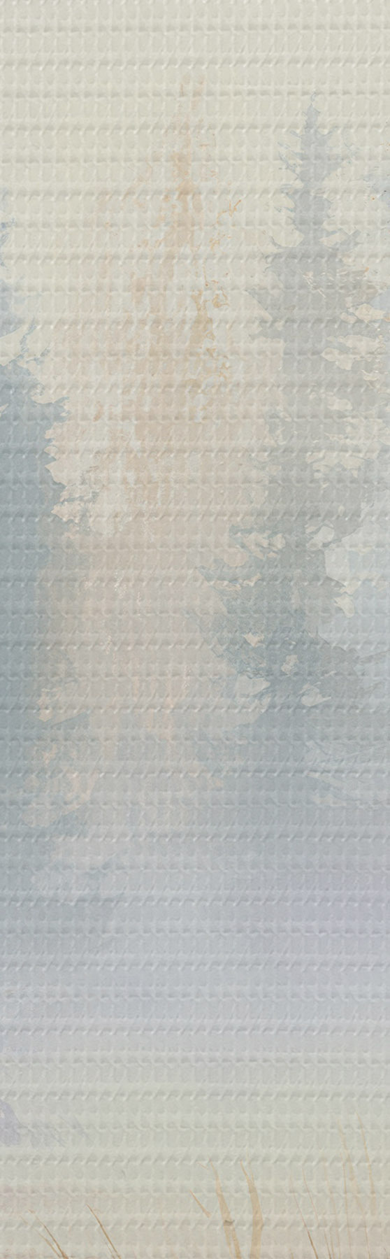Smalkais diegu pinums uz šī audekla atgādina profesionālu mākslinieku audeklu virsmu.