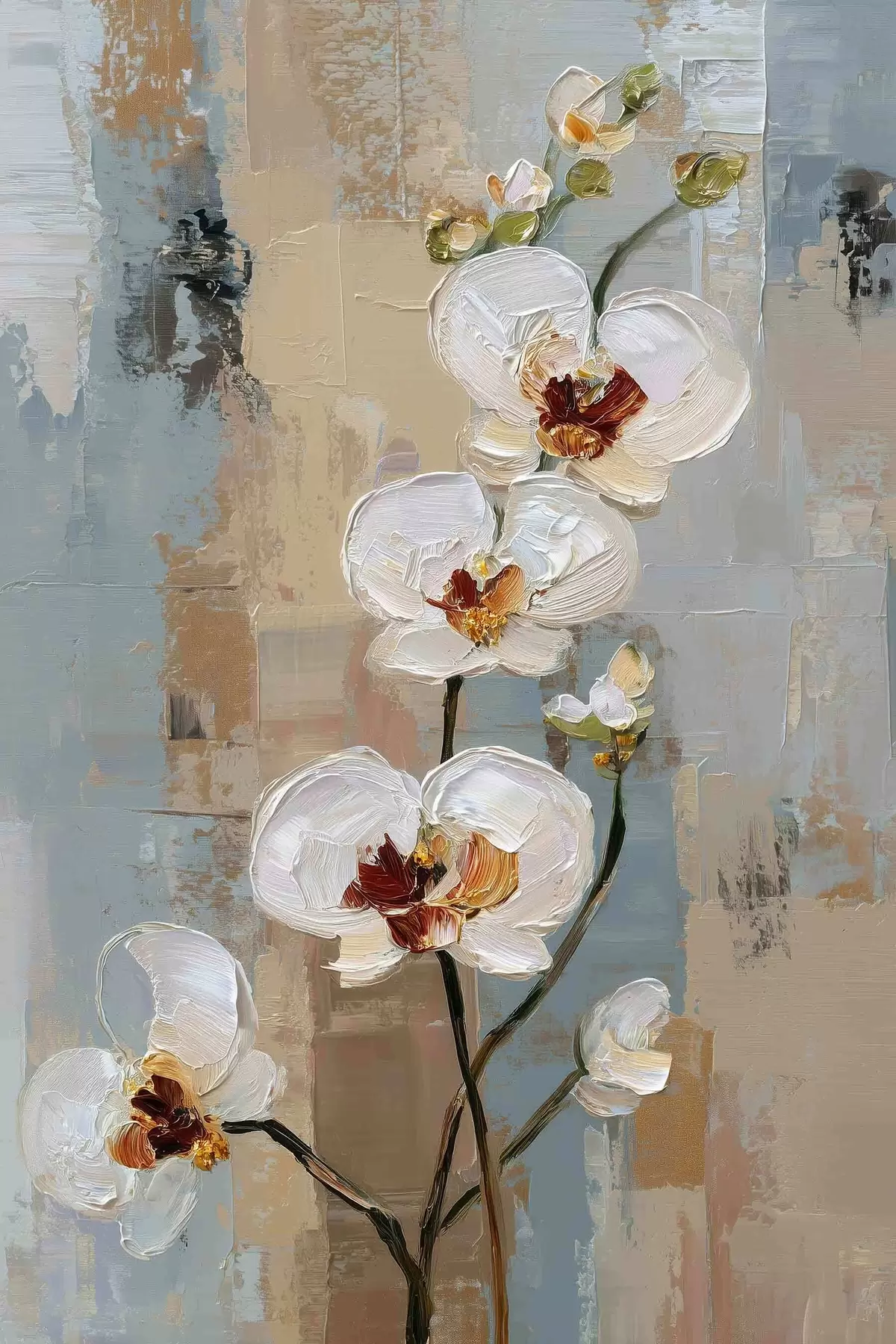 Glezna balti orhideju ziedi eļļas gleznas stilā Nr s47131