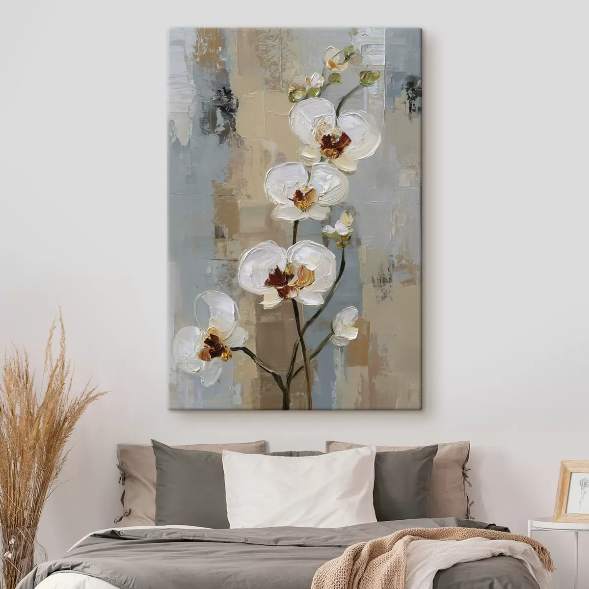Glezna balti orhideju ziedi eļļas gleznas stilā s47131