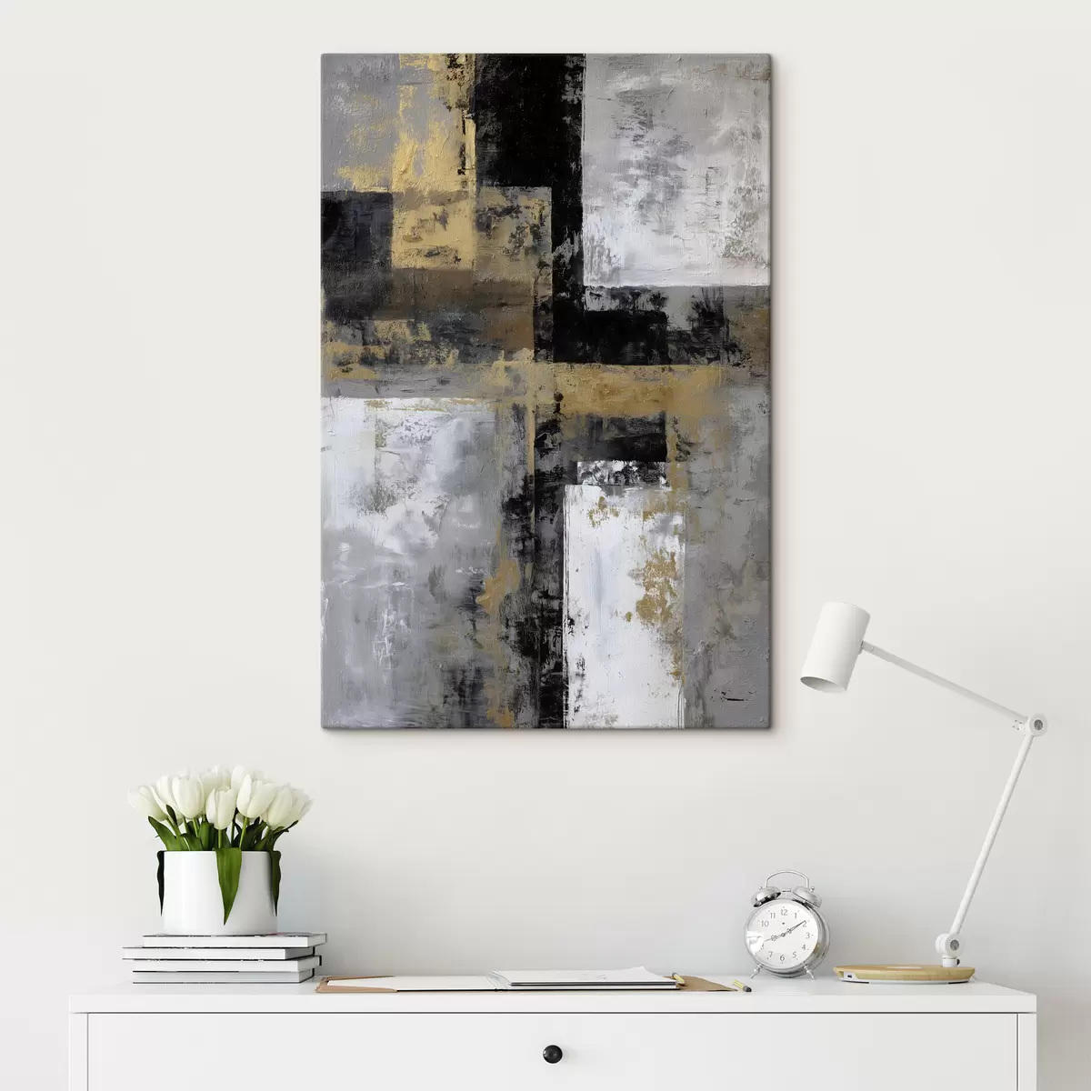 Glezna mūsdienīga faktūru abstrakcija melnā, pelēkā un baltā toņos s47139
