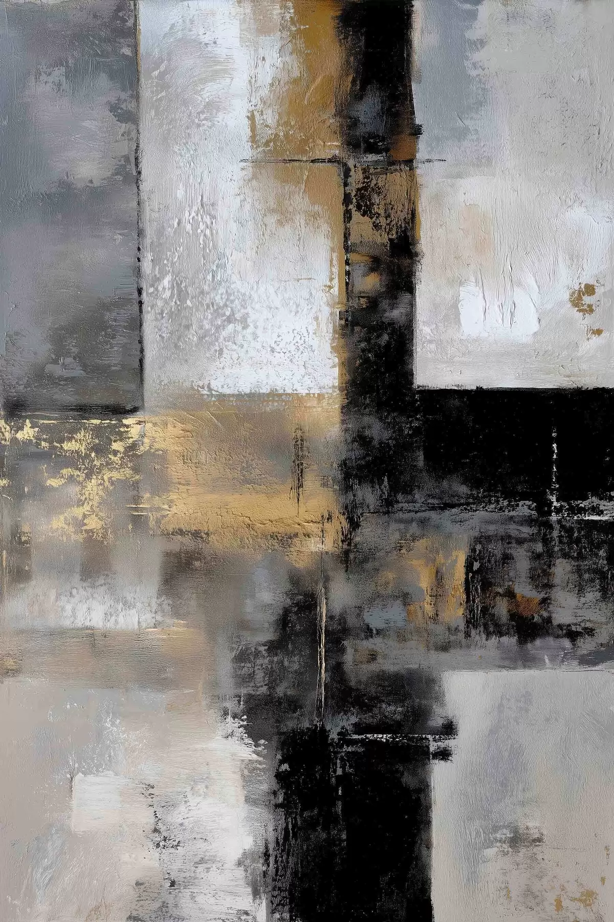 Glezna mūsdienīga faktūru abstrakcija melnā, pelēkā un baltā toņos Nr s47140