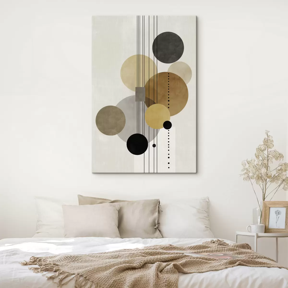 Glezna abstrakcija ar apļiem un līnijām siltās krāsās s47238