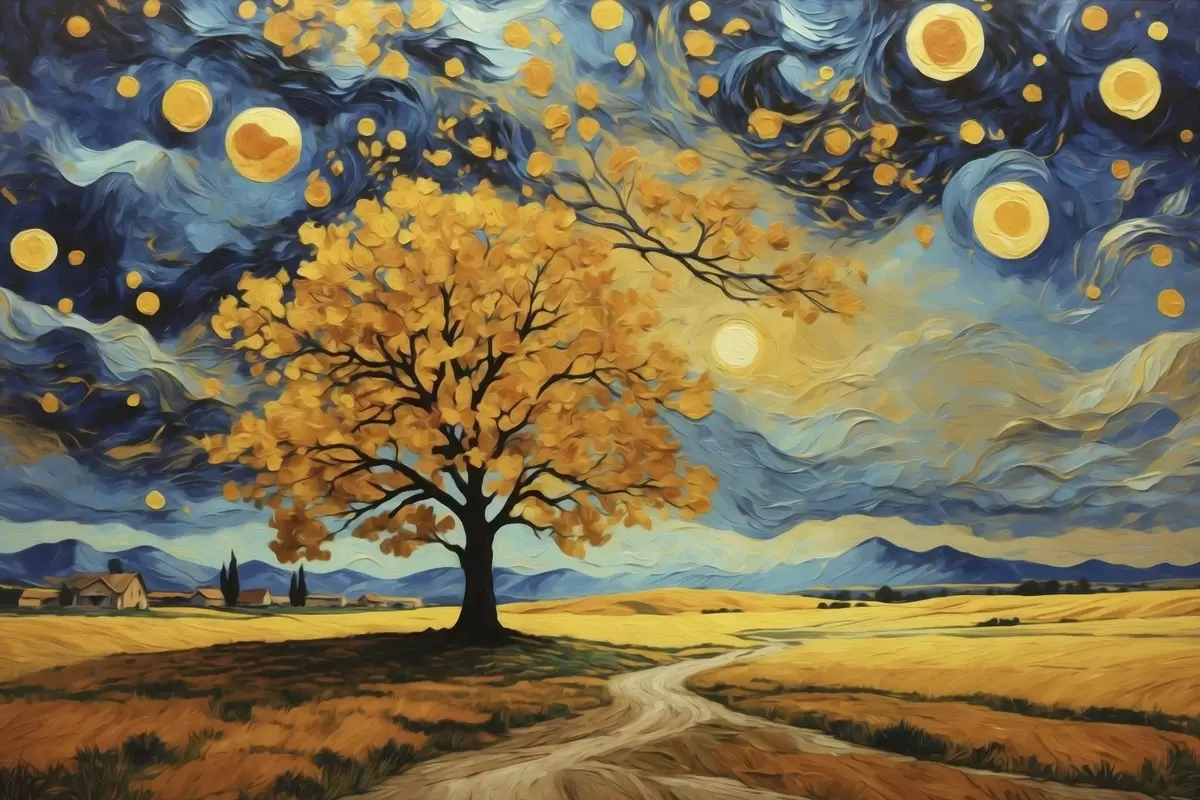 Glezna Ainava ar koku un spilgtu zvaigžņoto debesi Nr s47255