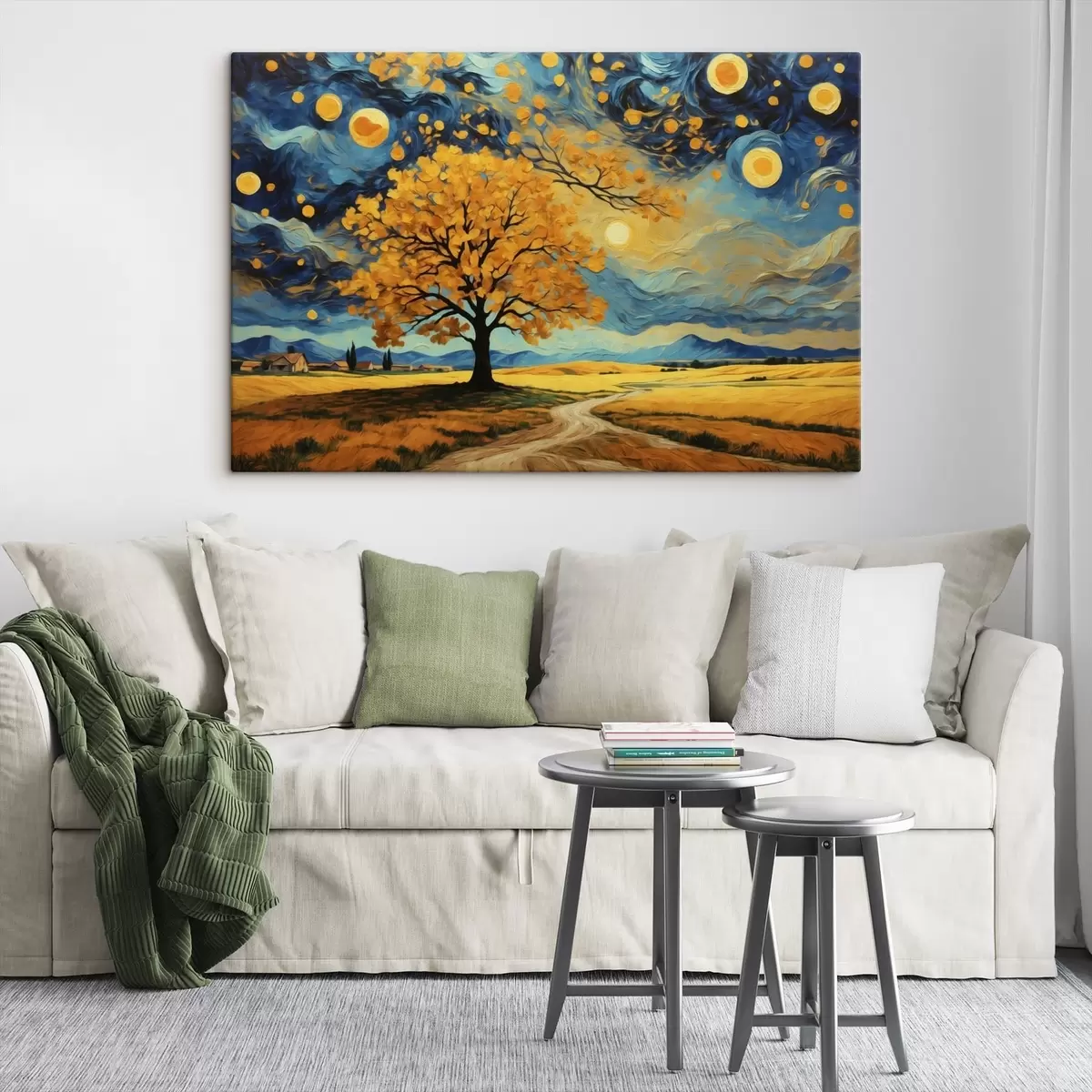 Glezna ir iekārtojama uzreiz pēc tās saņemšanas. Glezna tiks izstiepta uz 2 cm platām koka nestuvēm.
