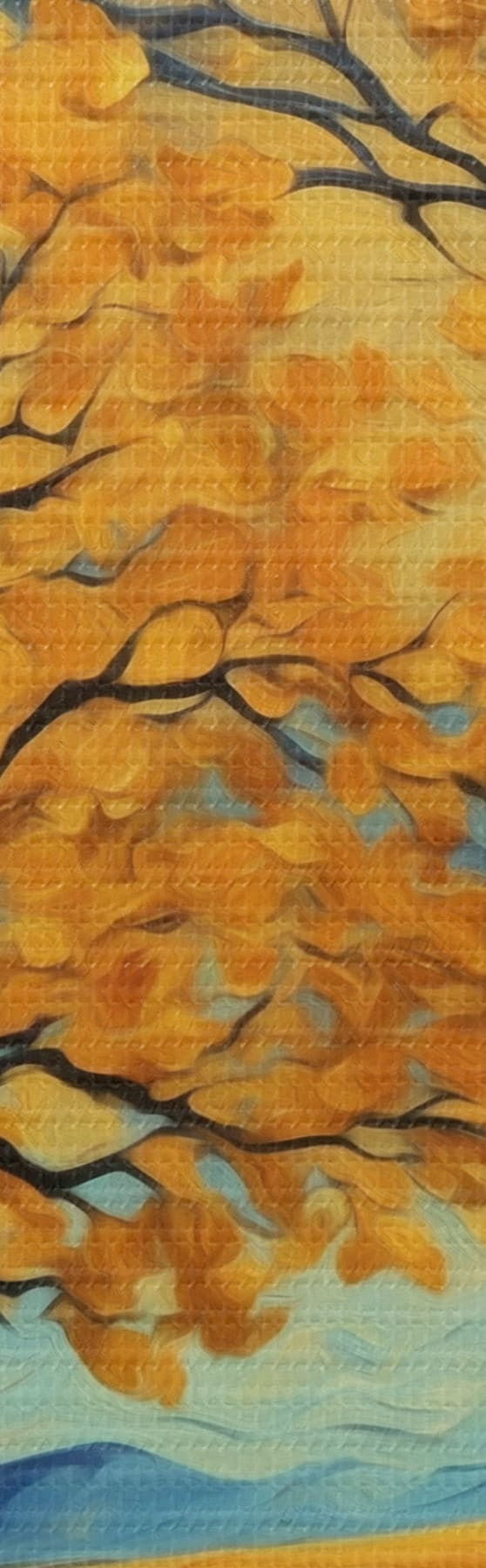 Smalkais diegu pinums uz šī audekla atgādina profesionālu mākslinieku audeklu virsmu.