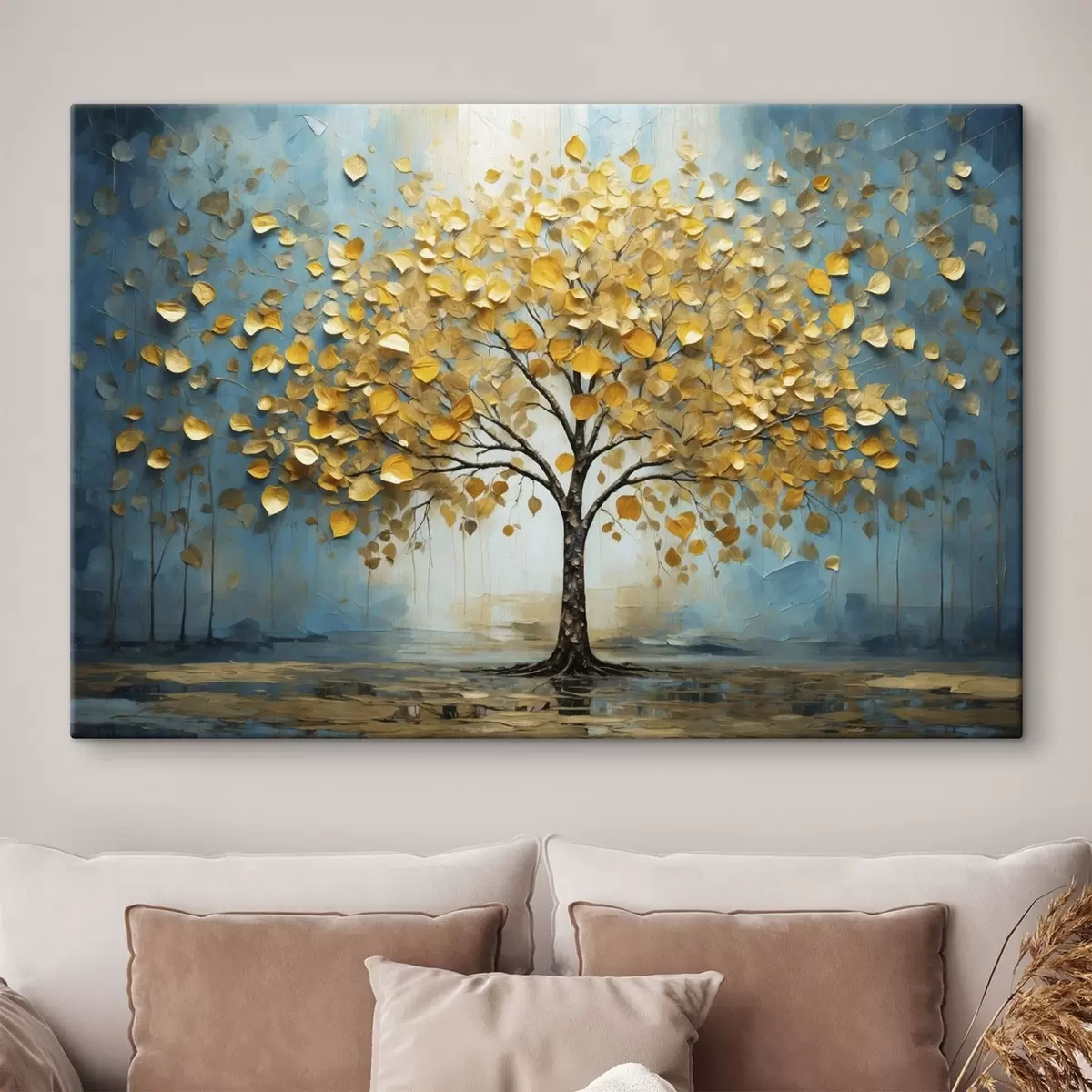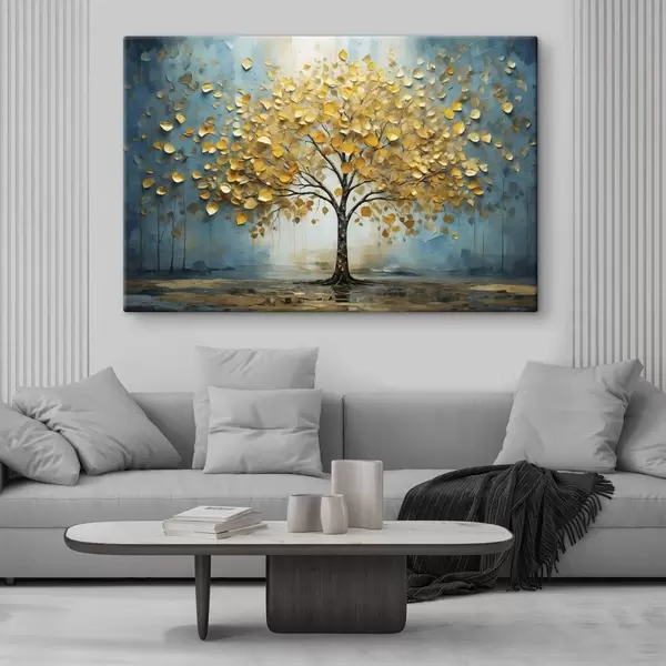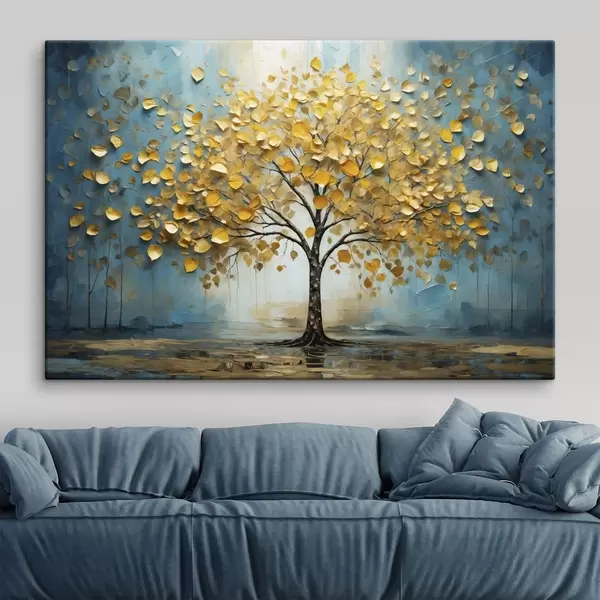 Glezna Koks ar dzeltenām lapām uz zila fona s47256