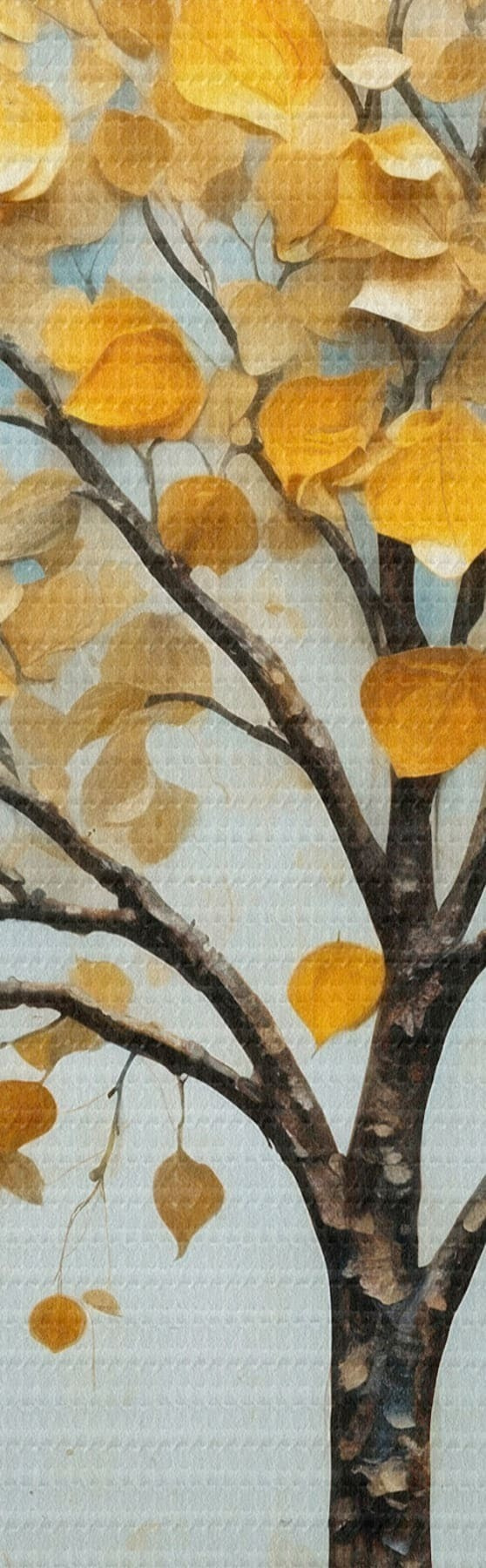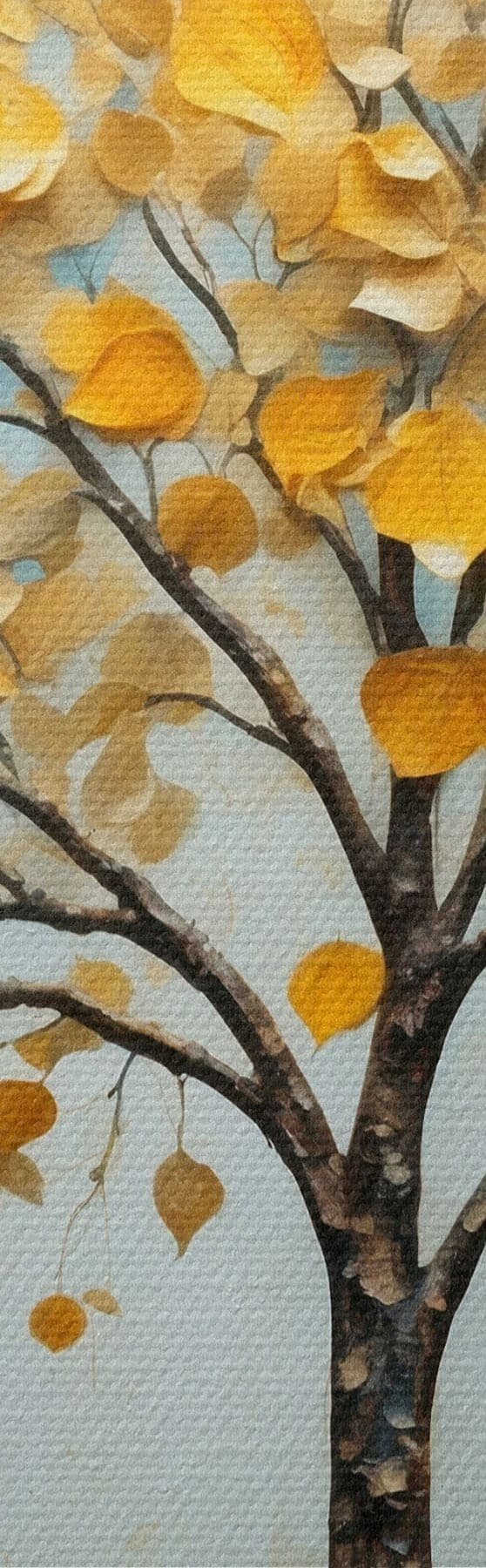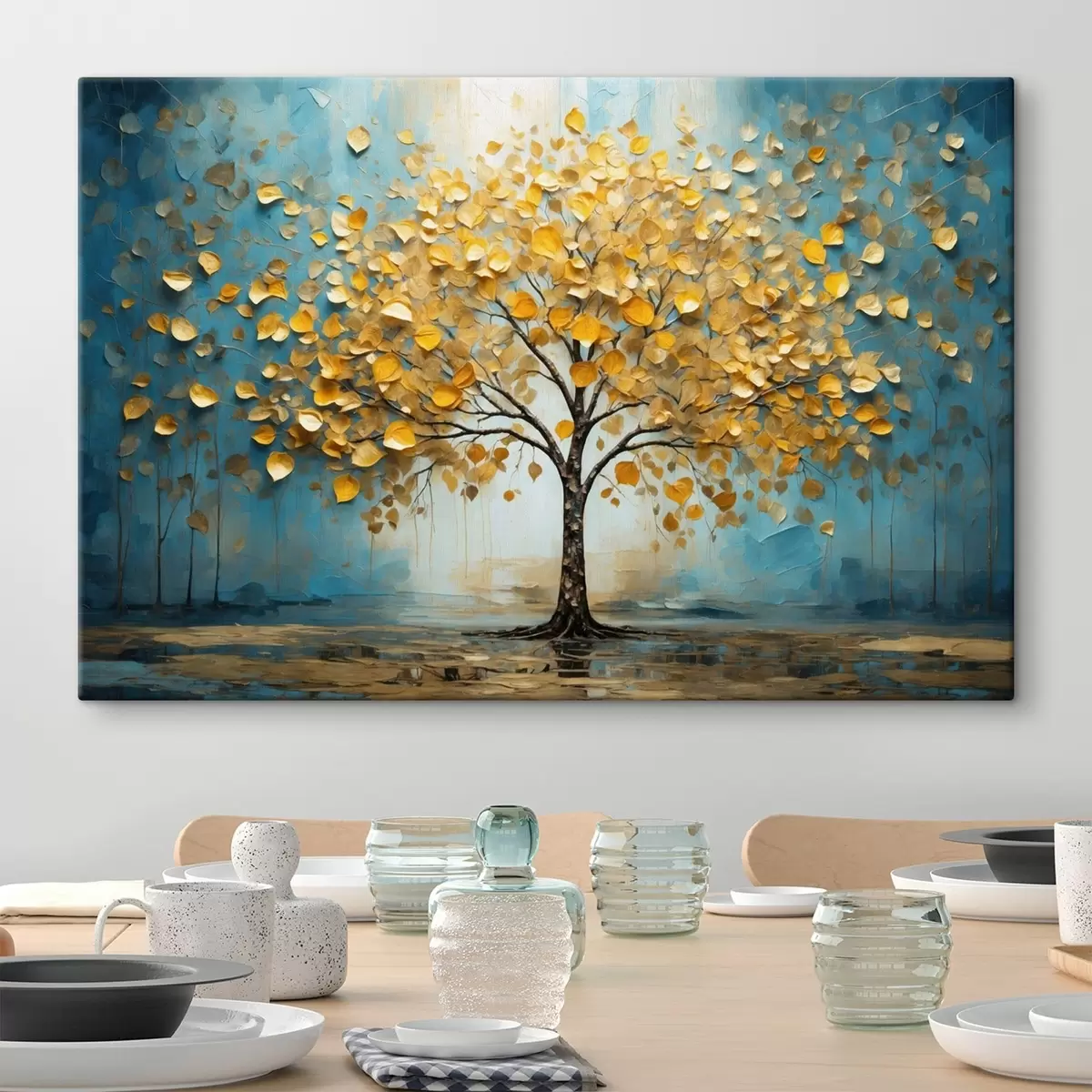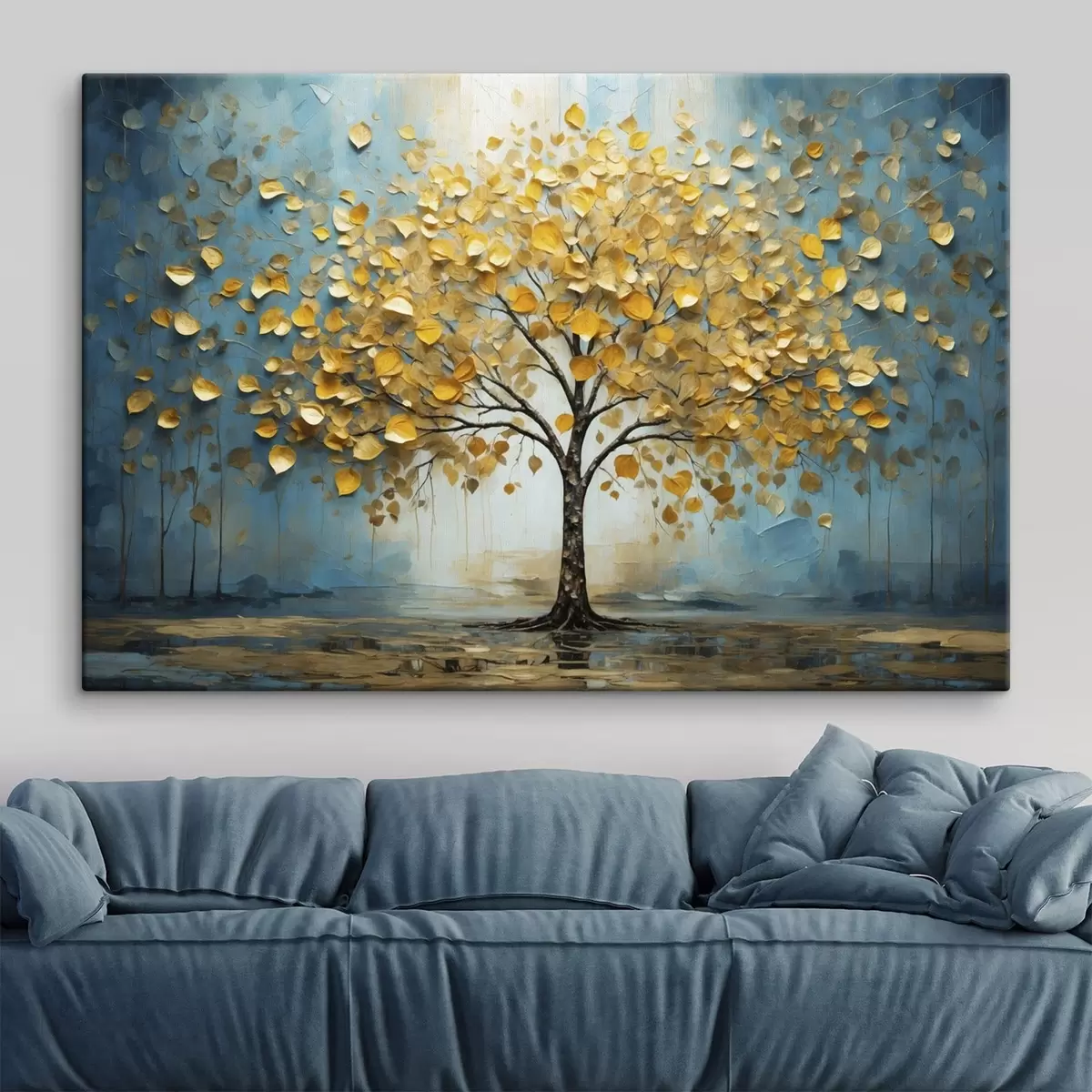 Glezna Koks ar dzeltenām lapām uz zila fona Nr s47256