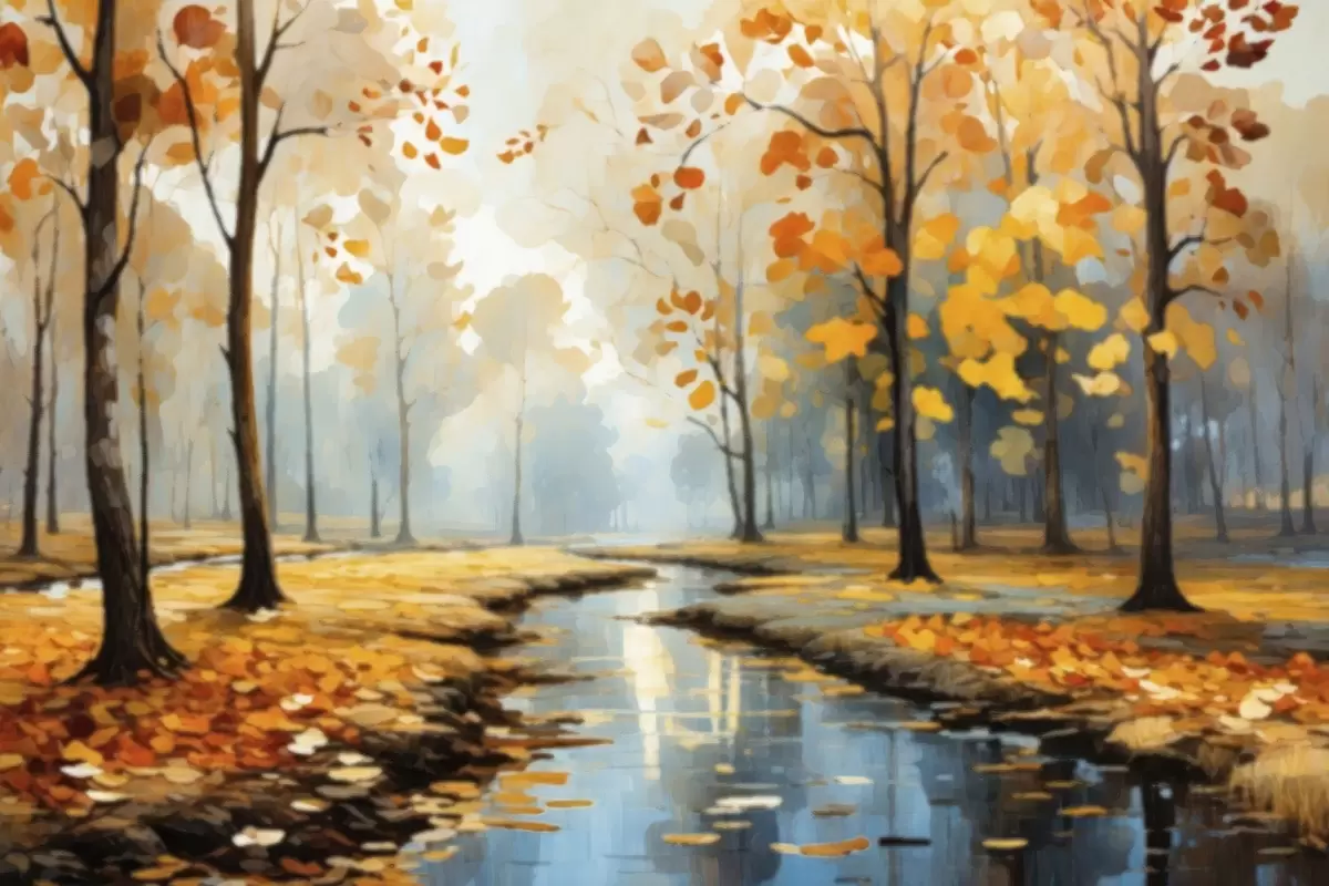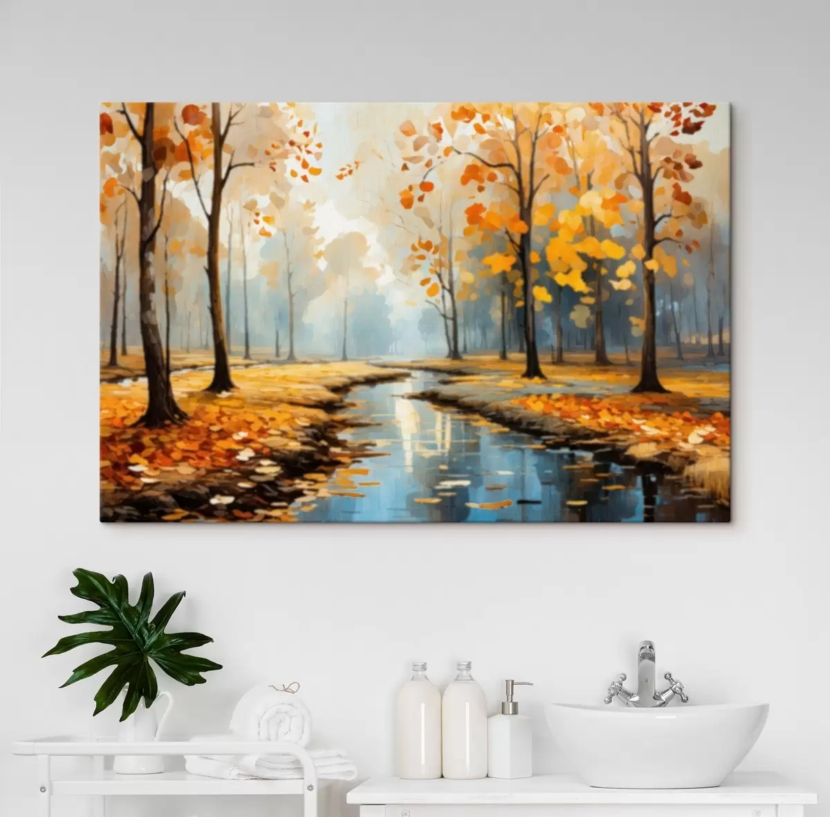 Glezna Rudens mežs ar strautu un dzeltenām lapām Nr s47278