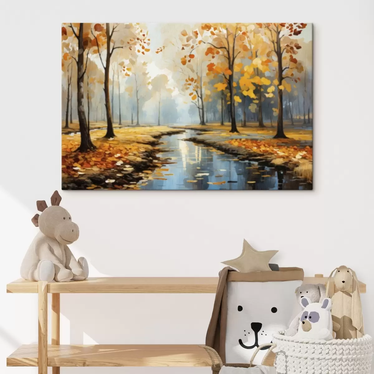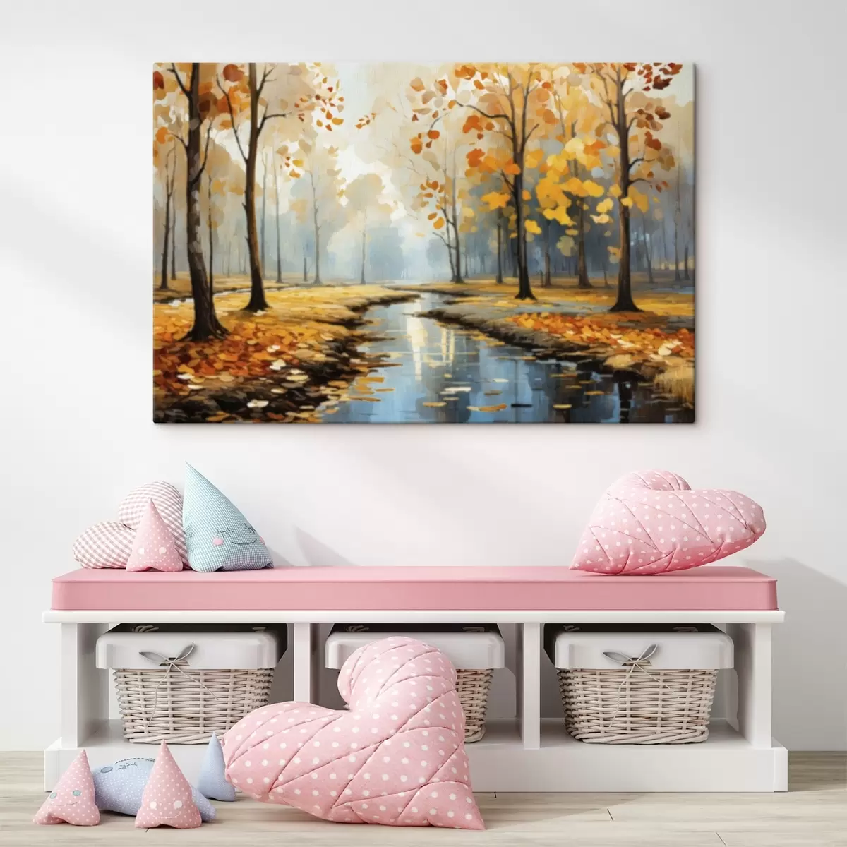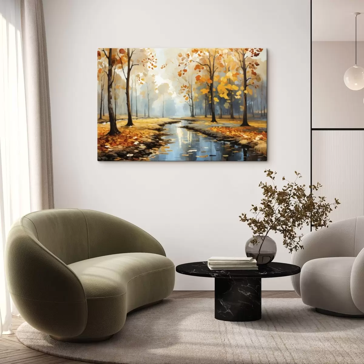 Glezna Rudens mežs ar strautu un dzeltenām lapām s47278