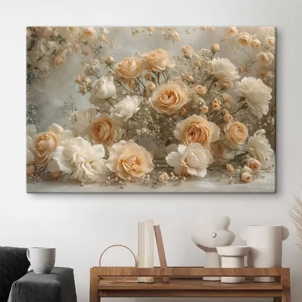 Glezna Delikātas krēmkrāsas rozes lielā kompozīcijā s47279