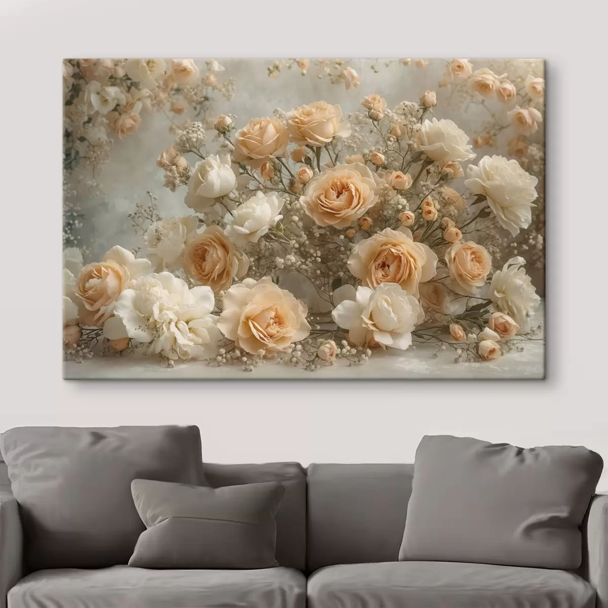Glezna Delikātas krēmkrāsas rozes lielā kompozīcijā Nr s47279