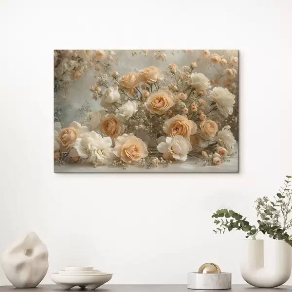 Glezna Delikātas krēmkrāsas rozes lielā kompozīcijā s47279
