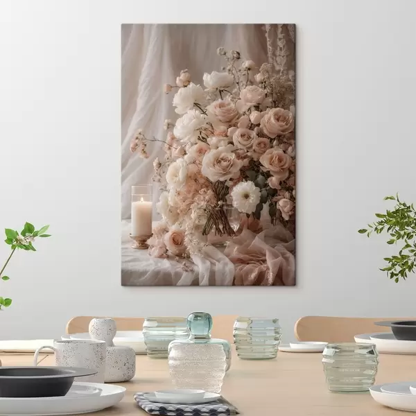 Glezna Krēmkrāsas ziedi pie iedegtas sveces Nr s47281