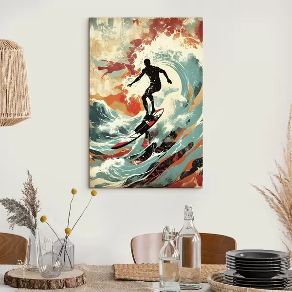 Glezna Sērfotāja siluets uz viļņiem spilgtās krāsās Nr s47284
