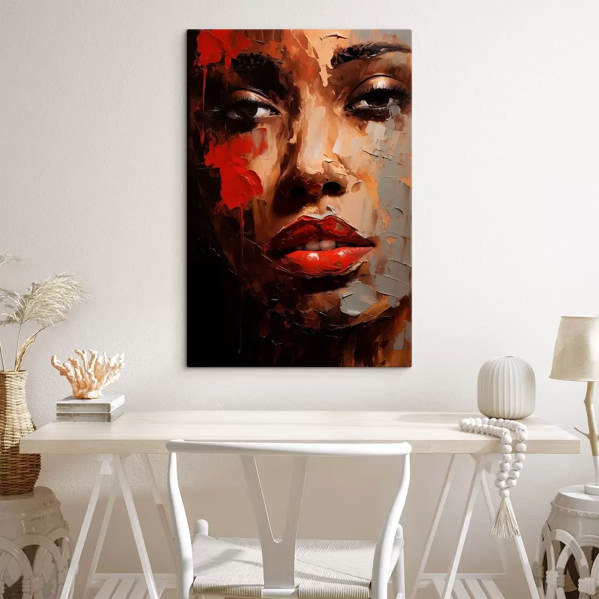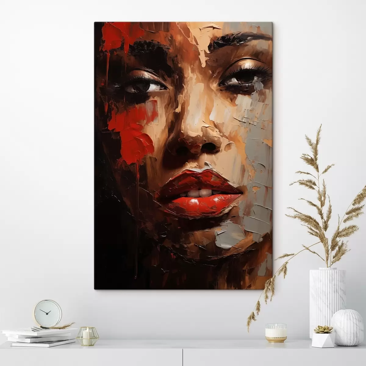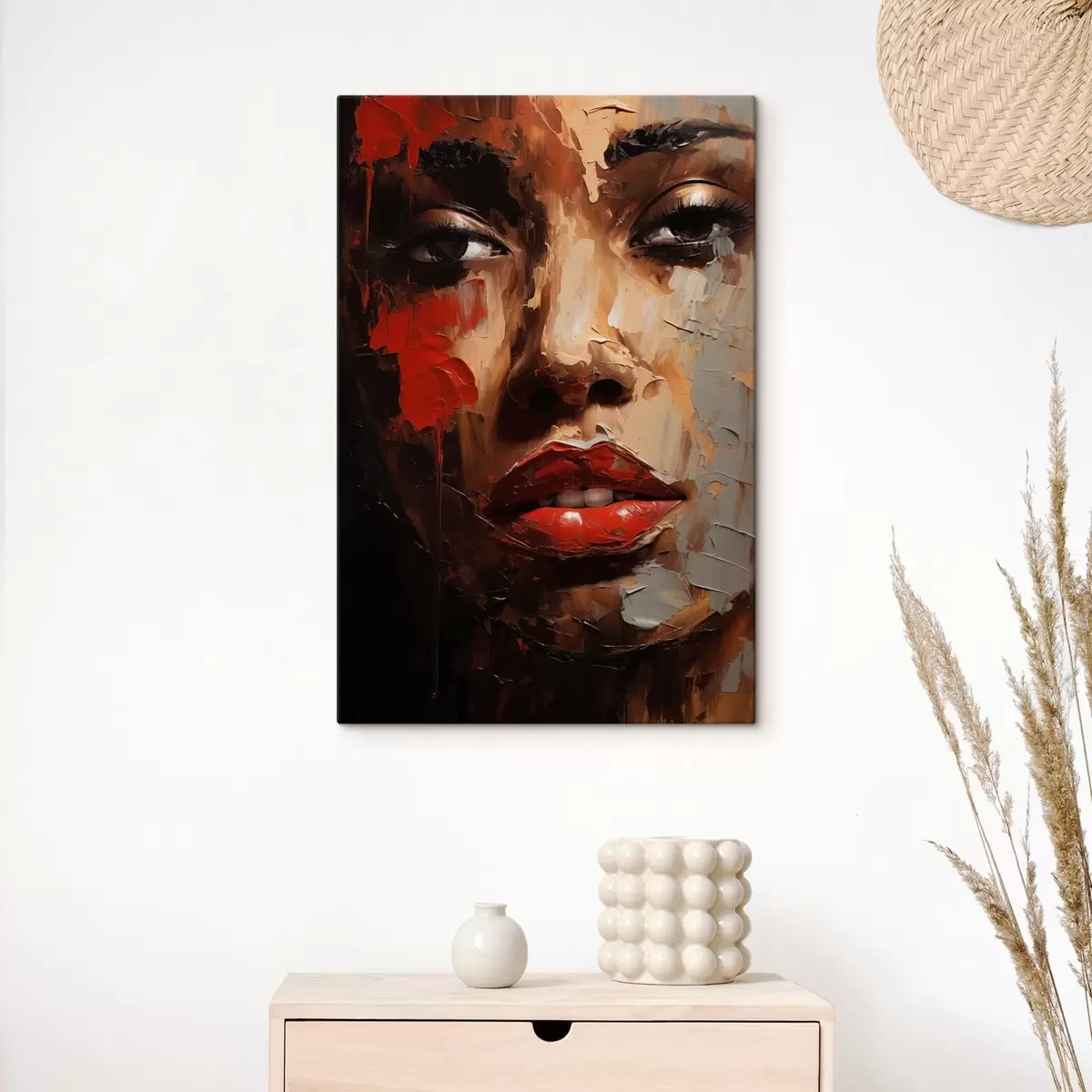 Glezna Spilgts sievietes portrets ar sarkaniem akcentiem s47293
