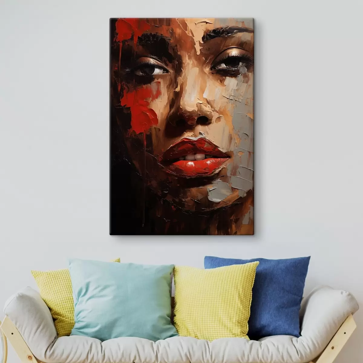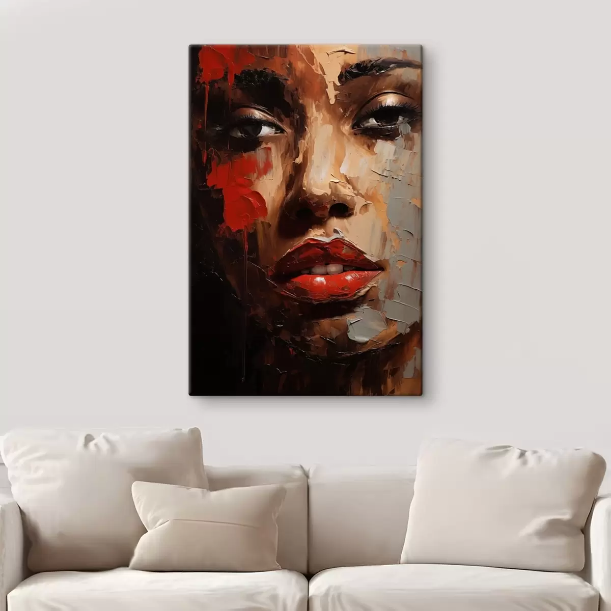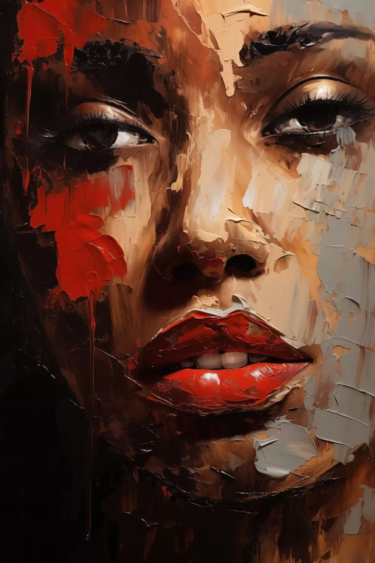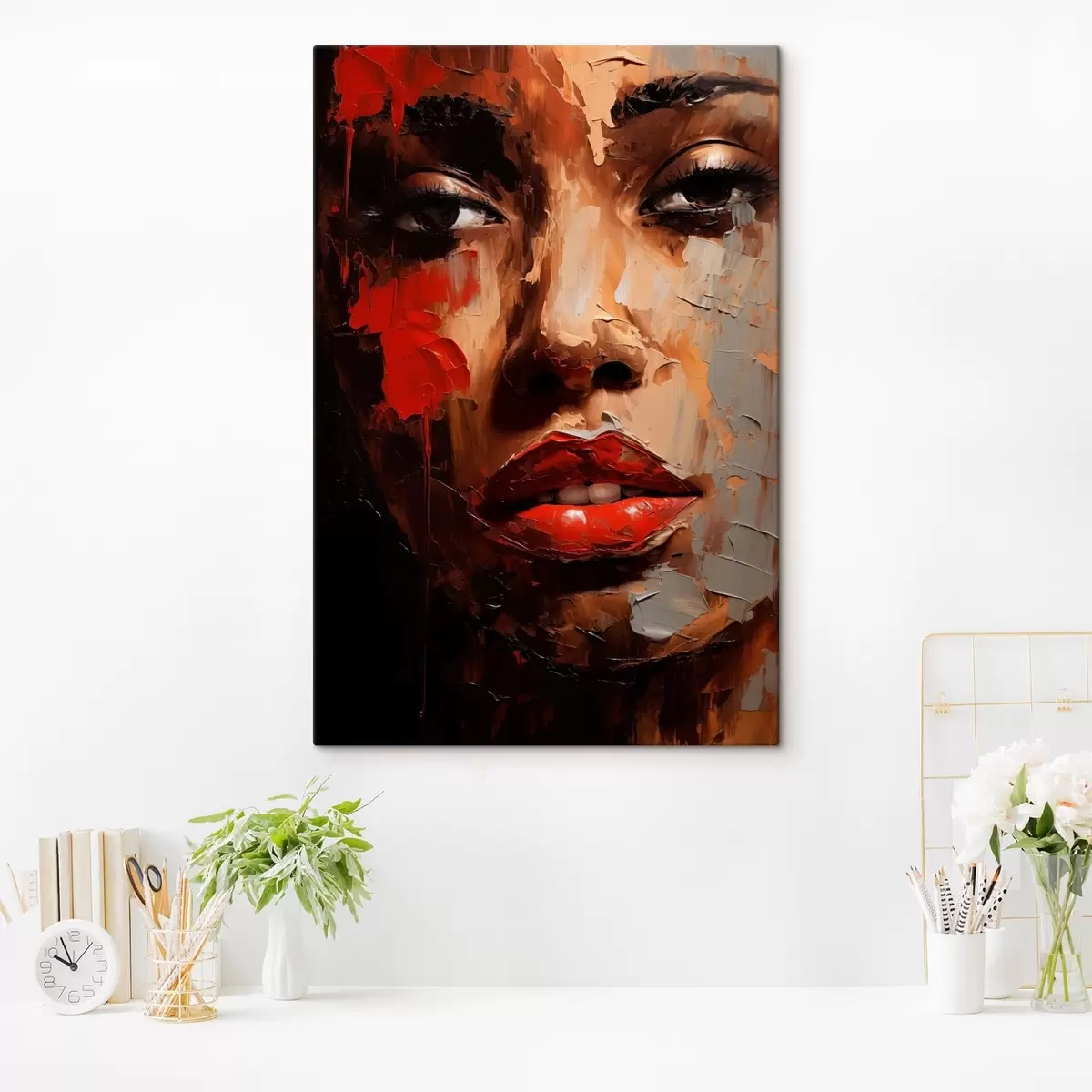 Glezna Spilgts sievietes portrets ar sarkaniem akcentiem s47293