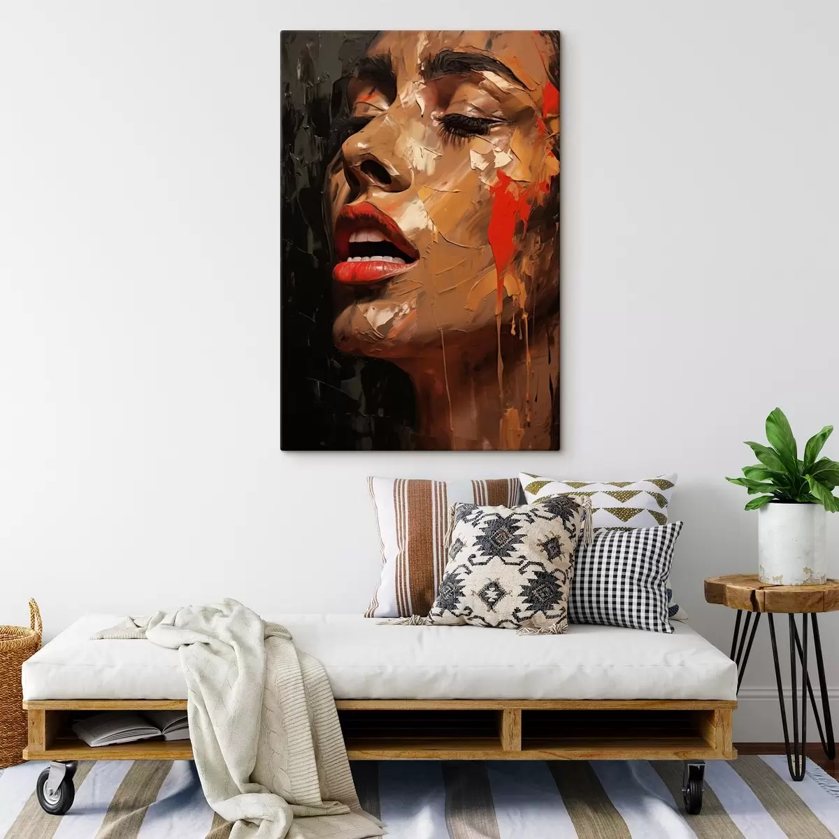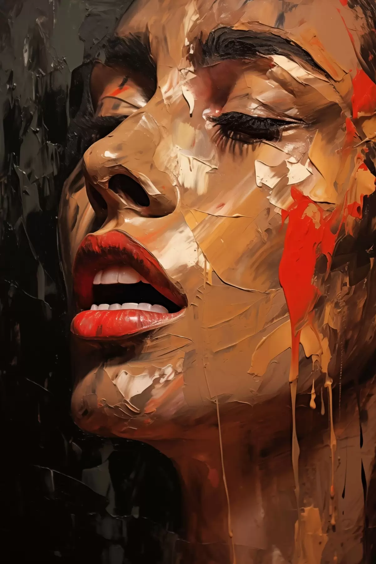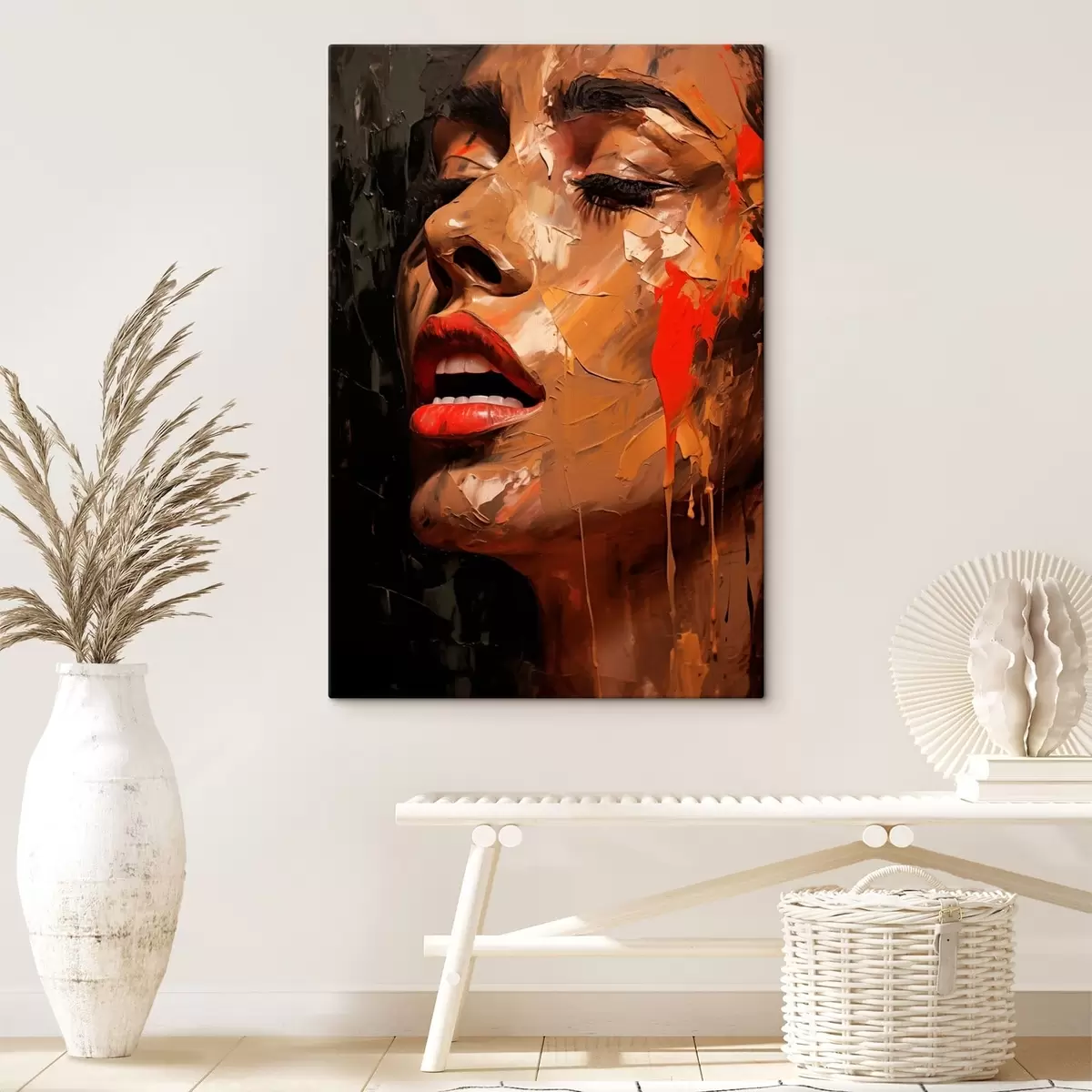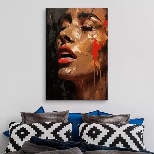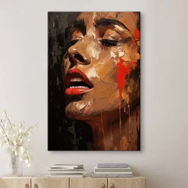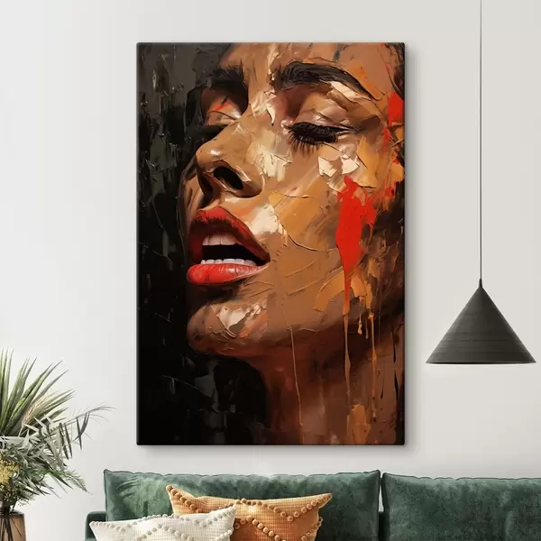 Glezna Sievietes portrets siltos triepienos un sarkanos toņos Nr s47294