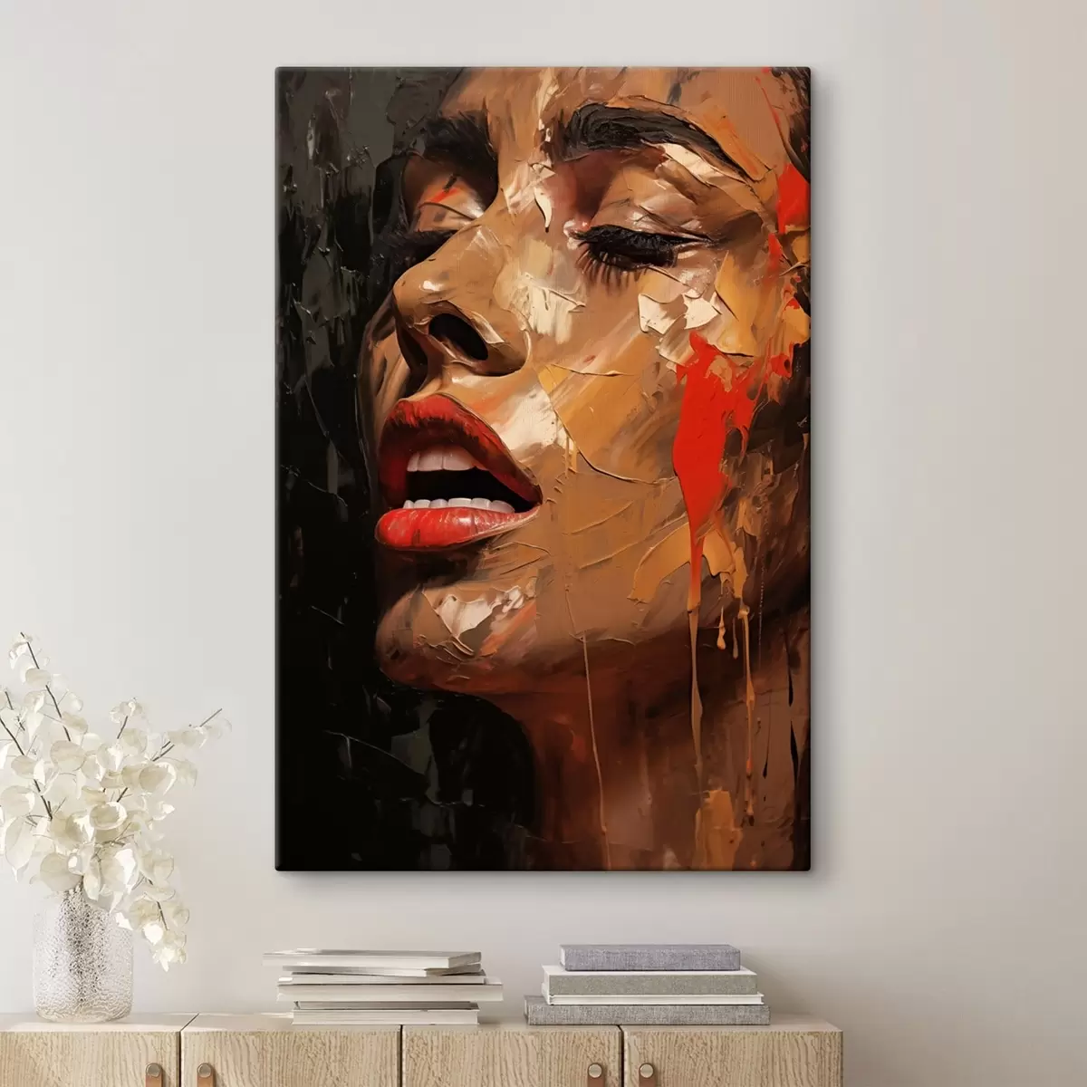 Glezna Sievietes portrets siltos triepienos un sarkanos toņos s47294
